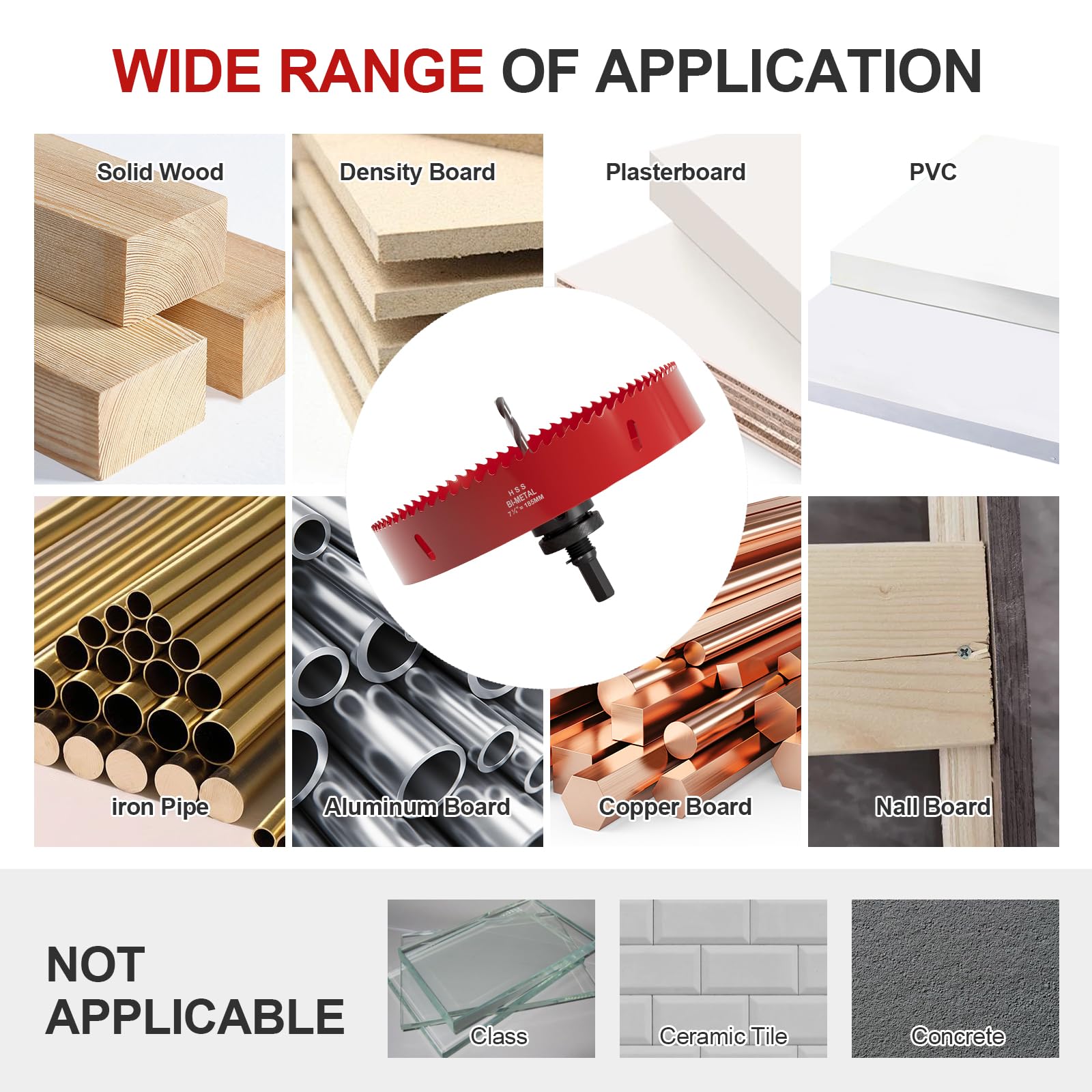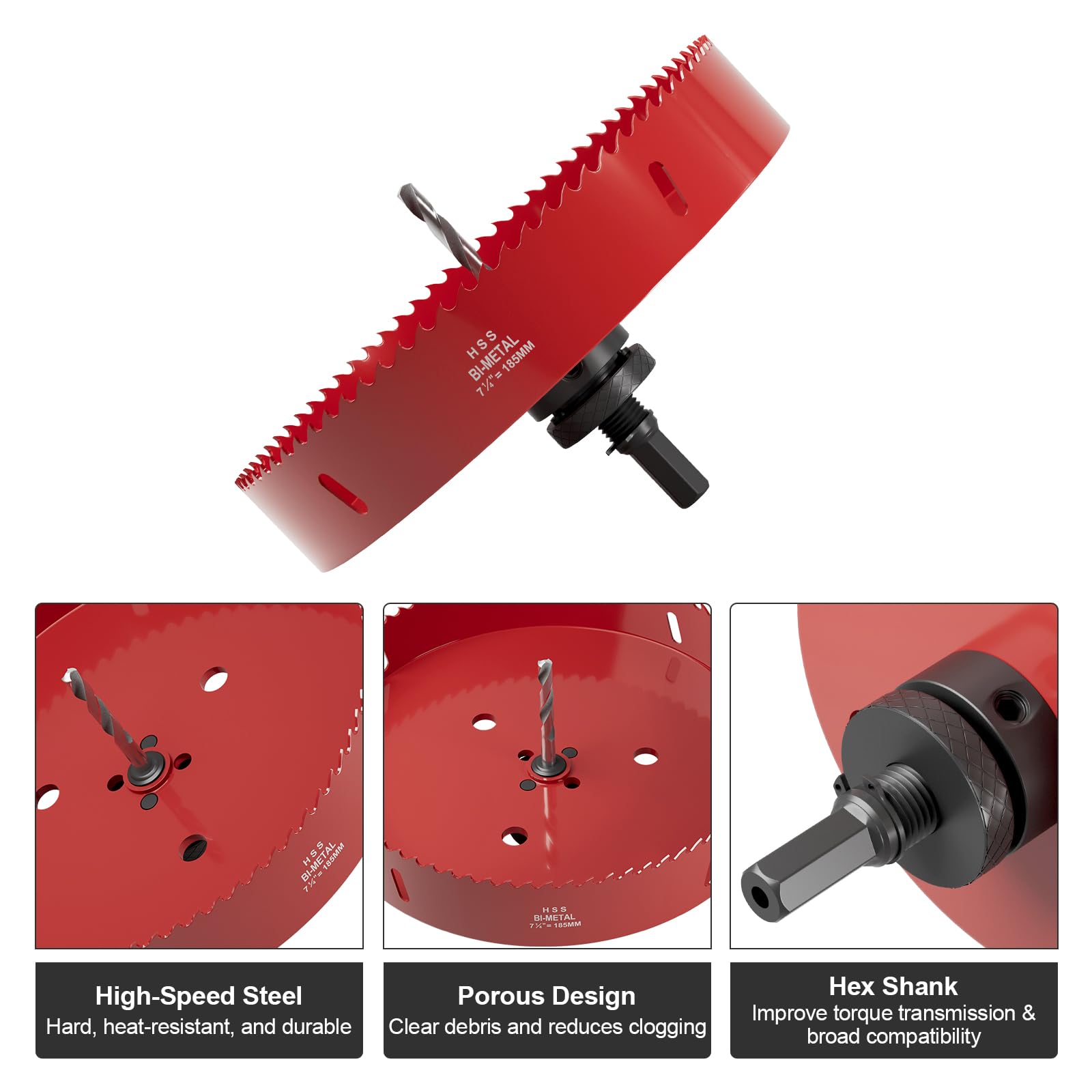 Sharp Cutting Edges: The hole saw features sharp and sturdy cutting edges, with the center drill made of M42 steel providing higher hardness and heat resistance; This ensures a sharp cutting edge, improving work efficiency and precision