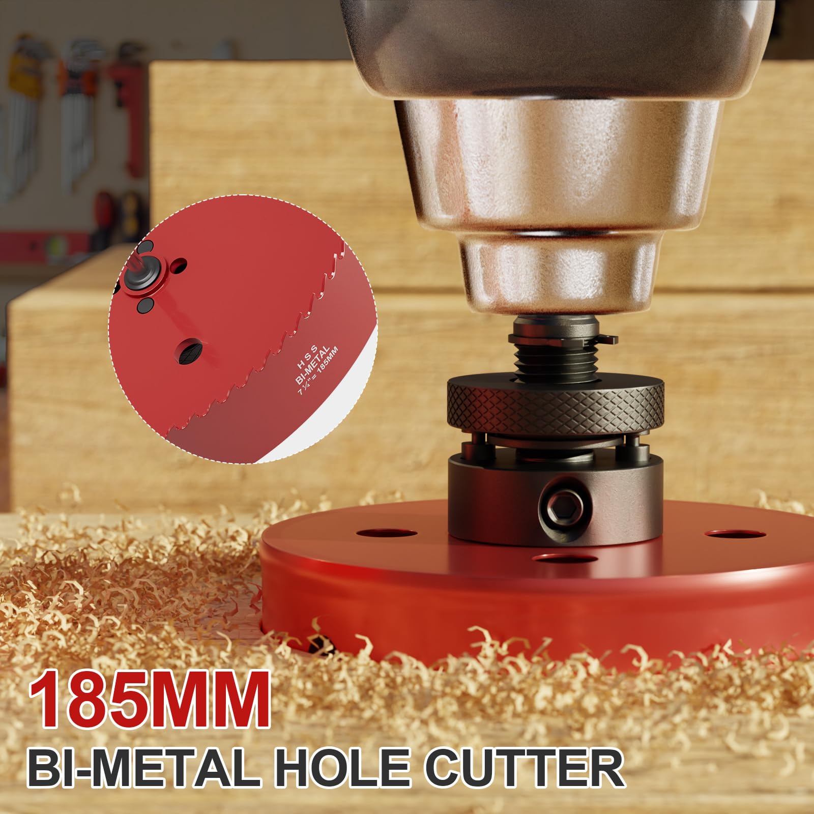 Ease of Use & Secure Clamping: Clear size markings on the hole saw help you quickly select the right model; The hex shank design fits most standard drill chucks, ensuring quick installation and a secure, stable grip; This prevents slipping under high loads and provides effective torque transmission, giving you peace of mind during use