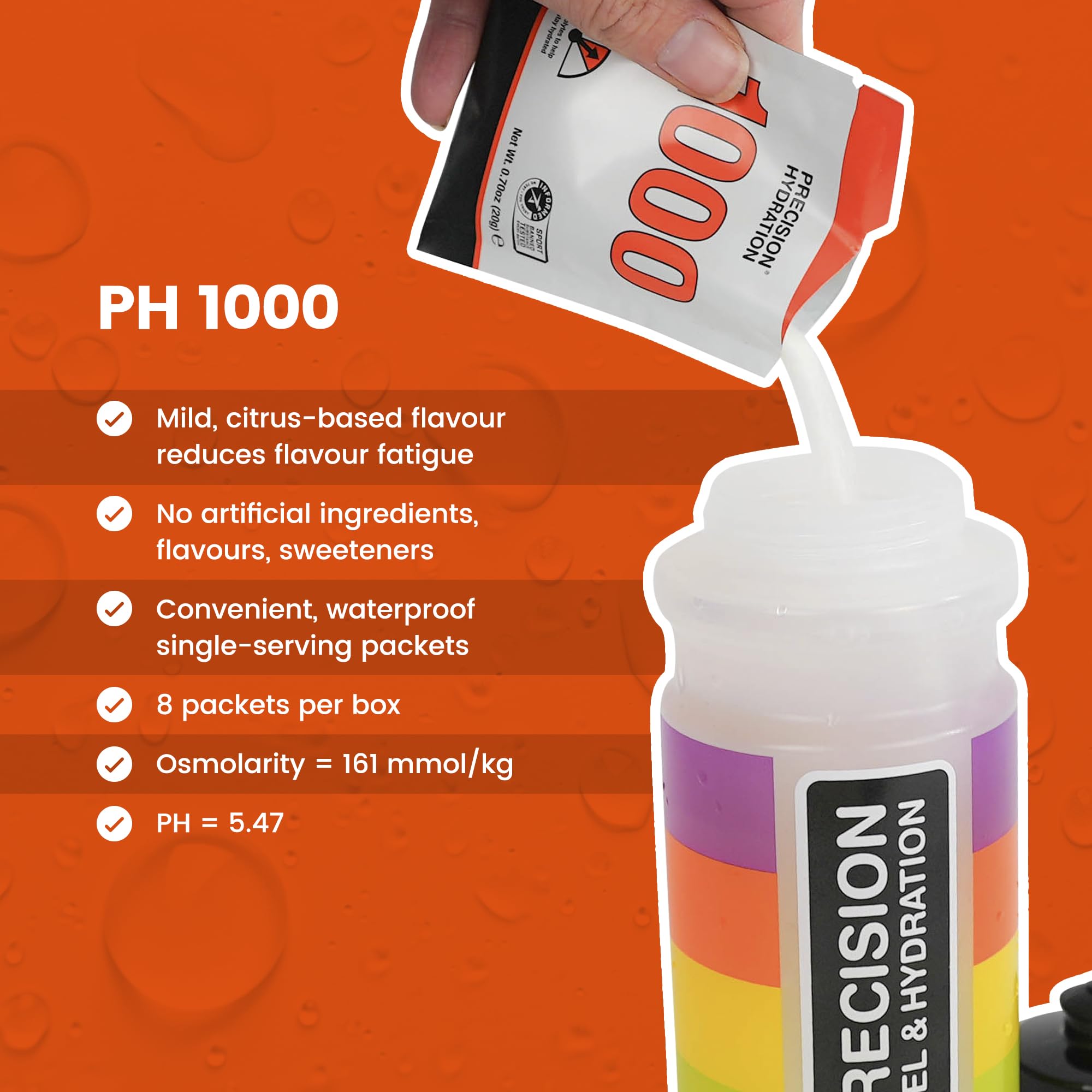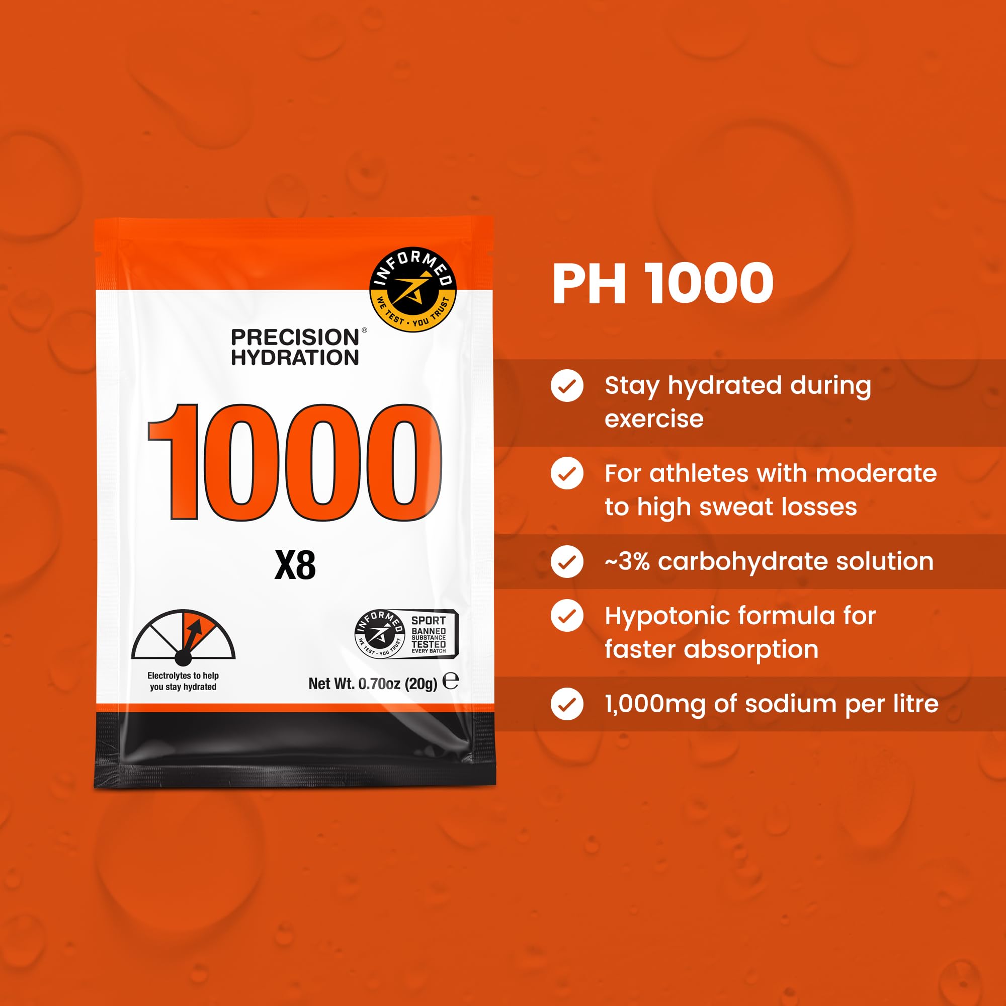 PH 1000 is a strong electrolyte drink designed to help you stay hydrated when you're sweating. Dissolve 1 packet in 16oz of water.