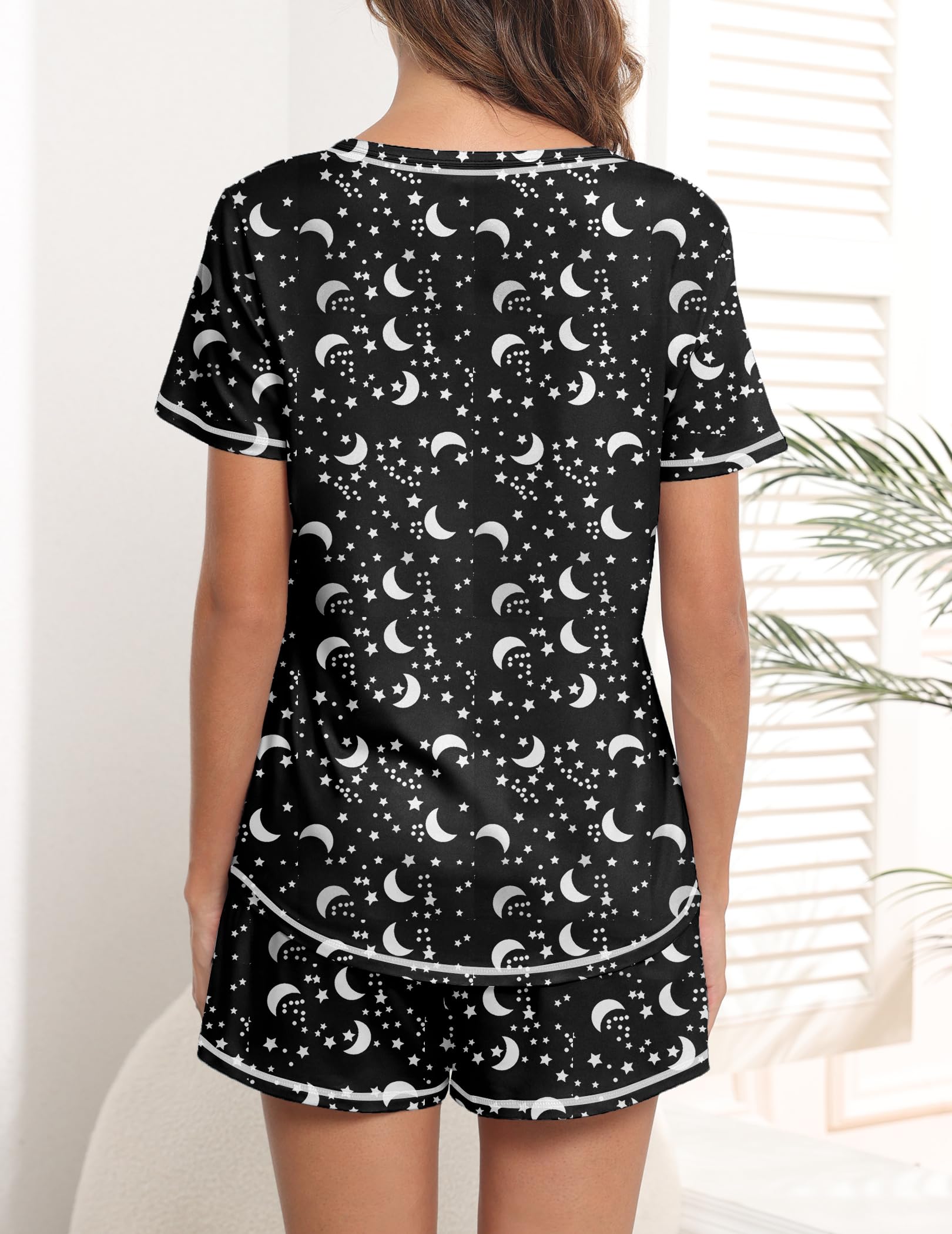 Design: The pajama top features classic chest pocket and V neck, with exquisite hemming workmanship; the pajama shorts features adjustable drawstring and pockets. Loose fit lounge sets, cute and comfy pajamas for women and teens girls