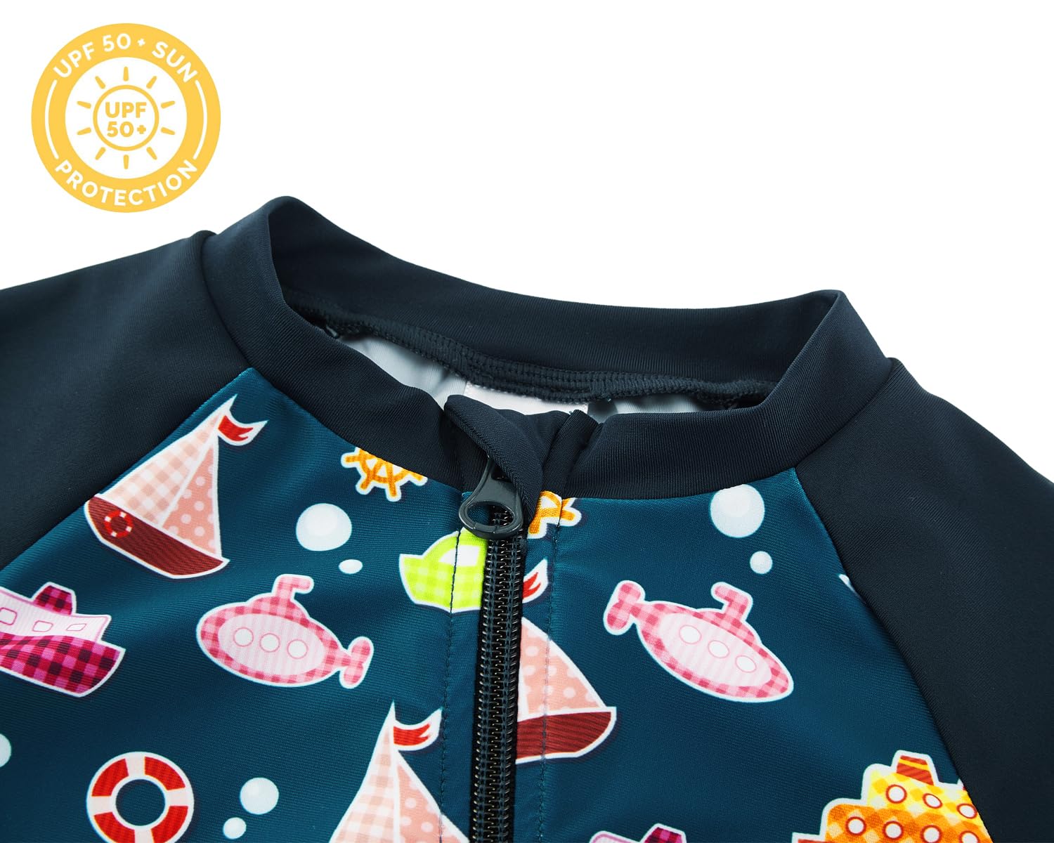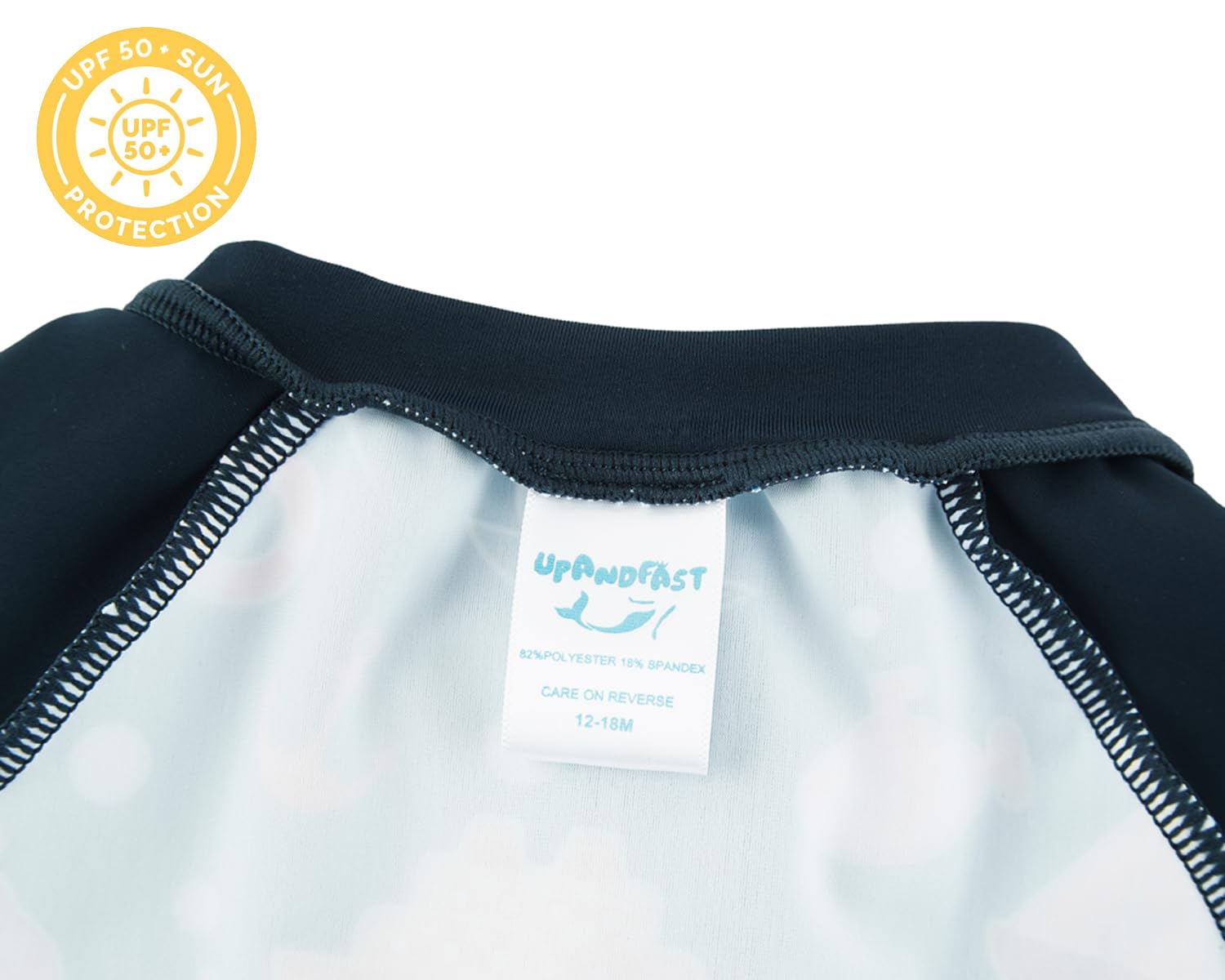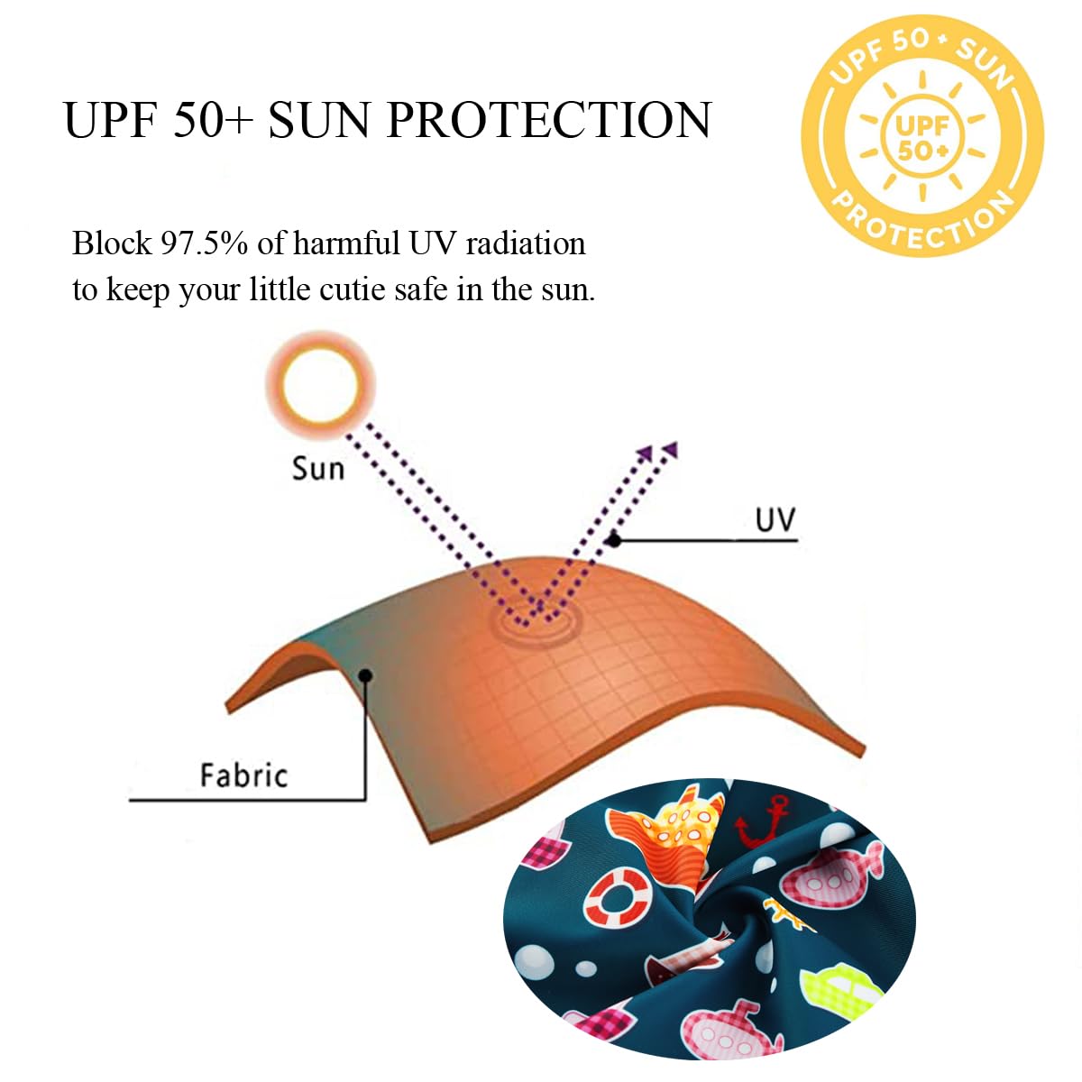 UPF 50+ SUN PROTECTION: This baby swimsuit is rated UPF 50+ sun protection, which blocks out 98% of the sun's harsh UVA and UVB rays. You'll have peace of mind knowing baby's delicate skin is protected from sunburns