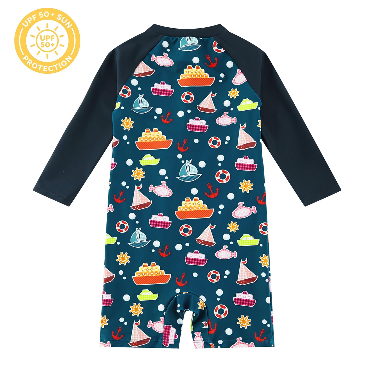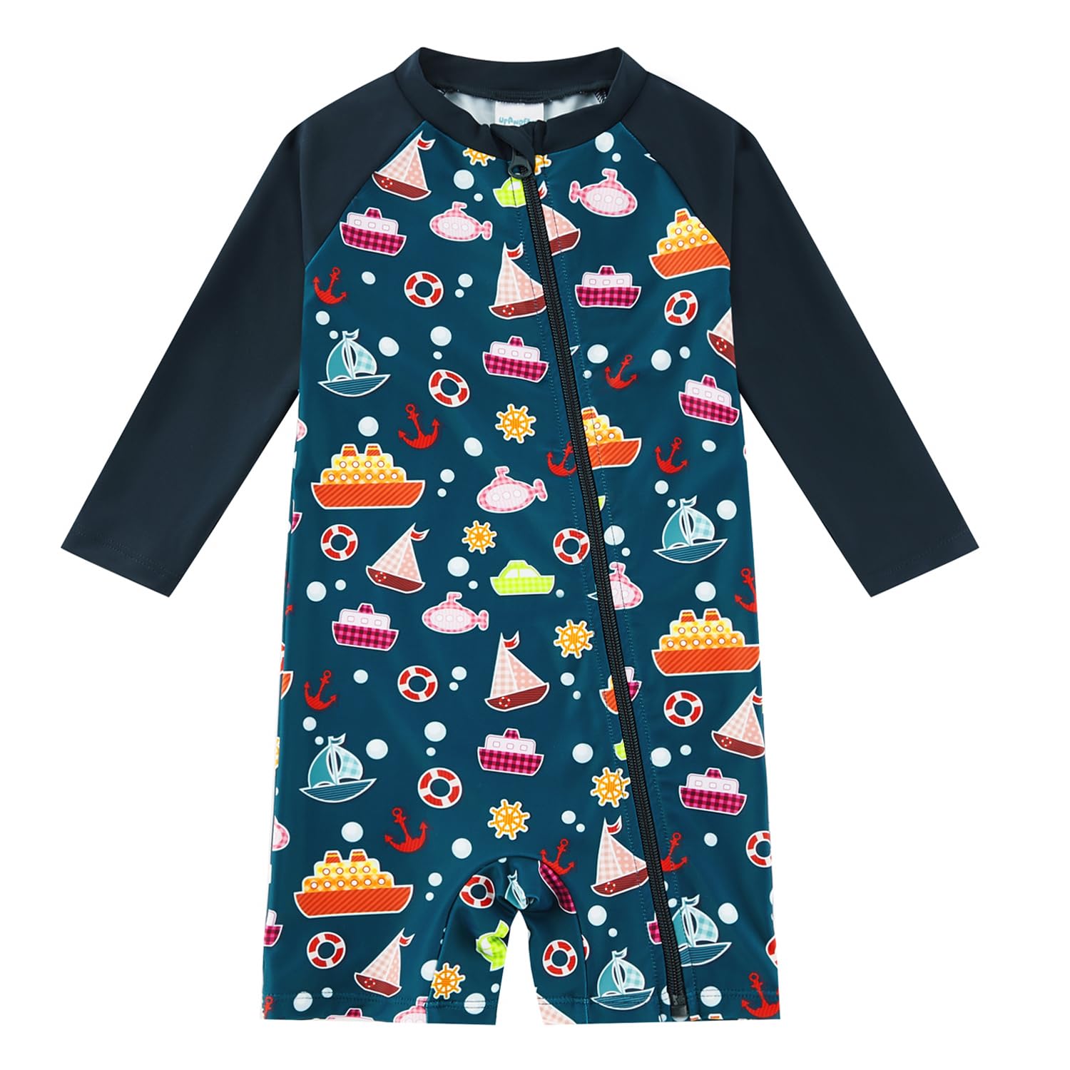 TOTAL SUN PROTECTION: Baby boy one piece sunsuit offers full-length sleeves and leg coverage to block the sun's harmful rays from the skin of baby. Cover up instead of lathering up with chemical sunscreens