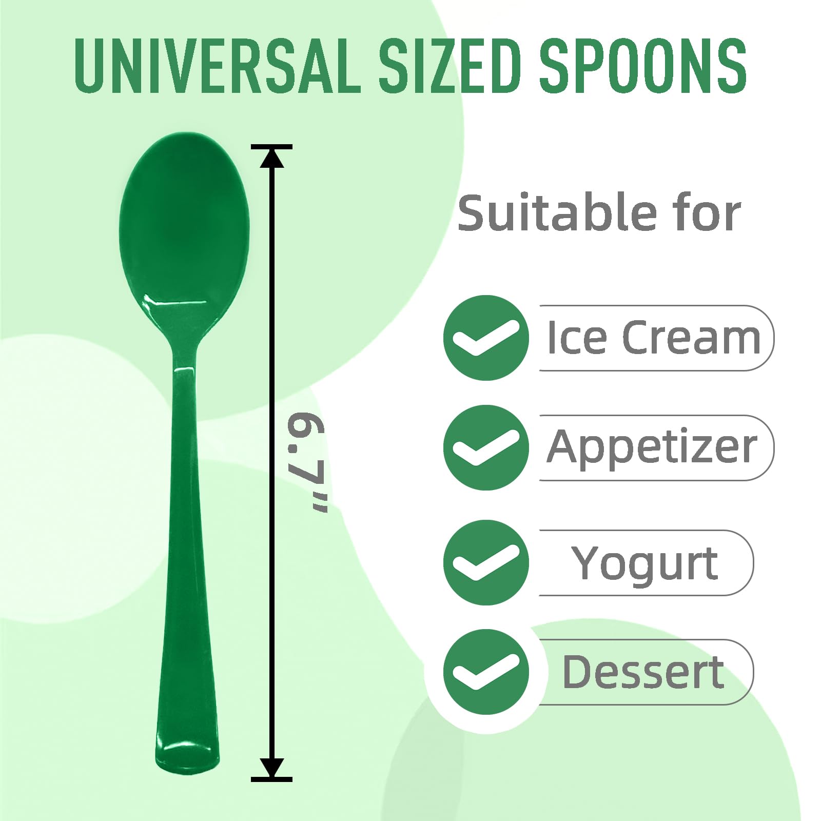 【Sufficient Quantity】: Each pack contains 50 pcs of heavy-duty 6.7 inch green plastic spoons, no need to buy frequently, suitable for family storage, restaurant use or large party activities, easily meet the needs of many people. Offering multiple different color options, they are sure to match your decor.