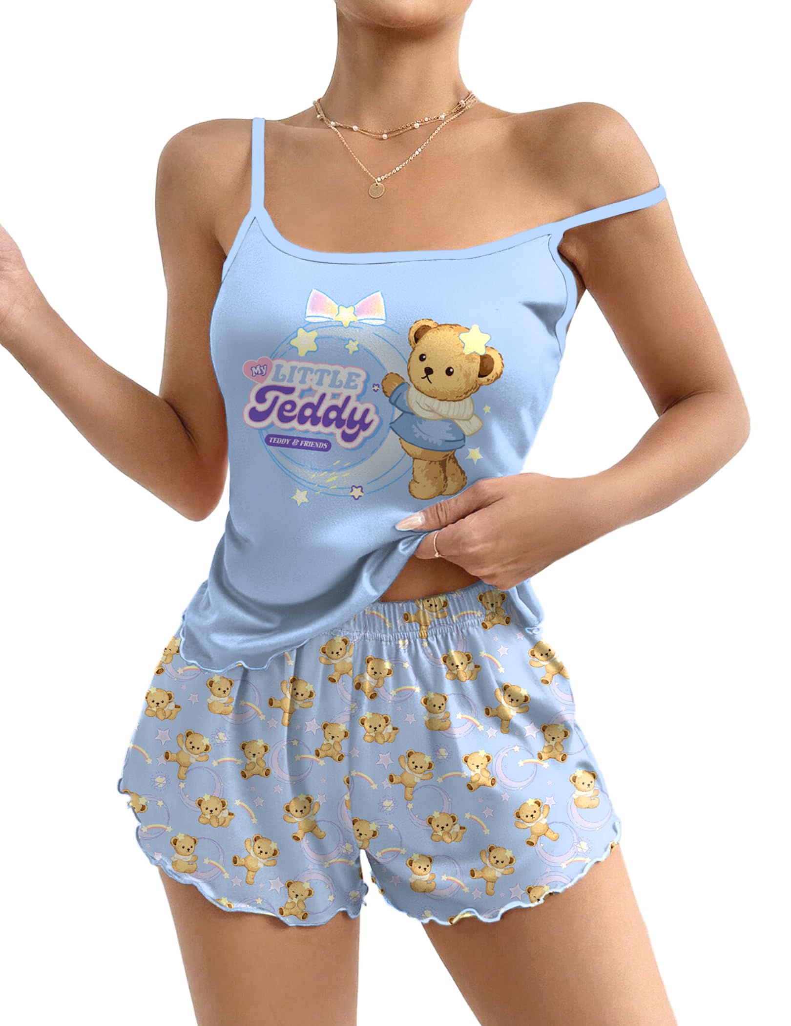 Unique Design: Adjustable shoulder strap tank top and elastic waist shorts can perfectly fit your body, adapt to different body shapes