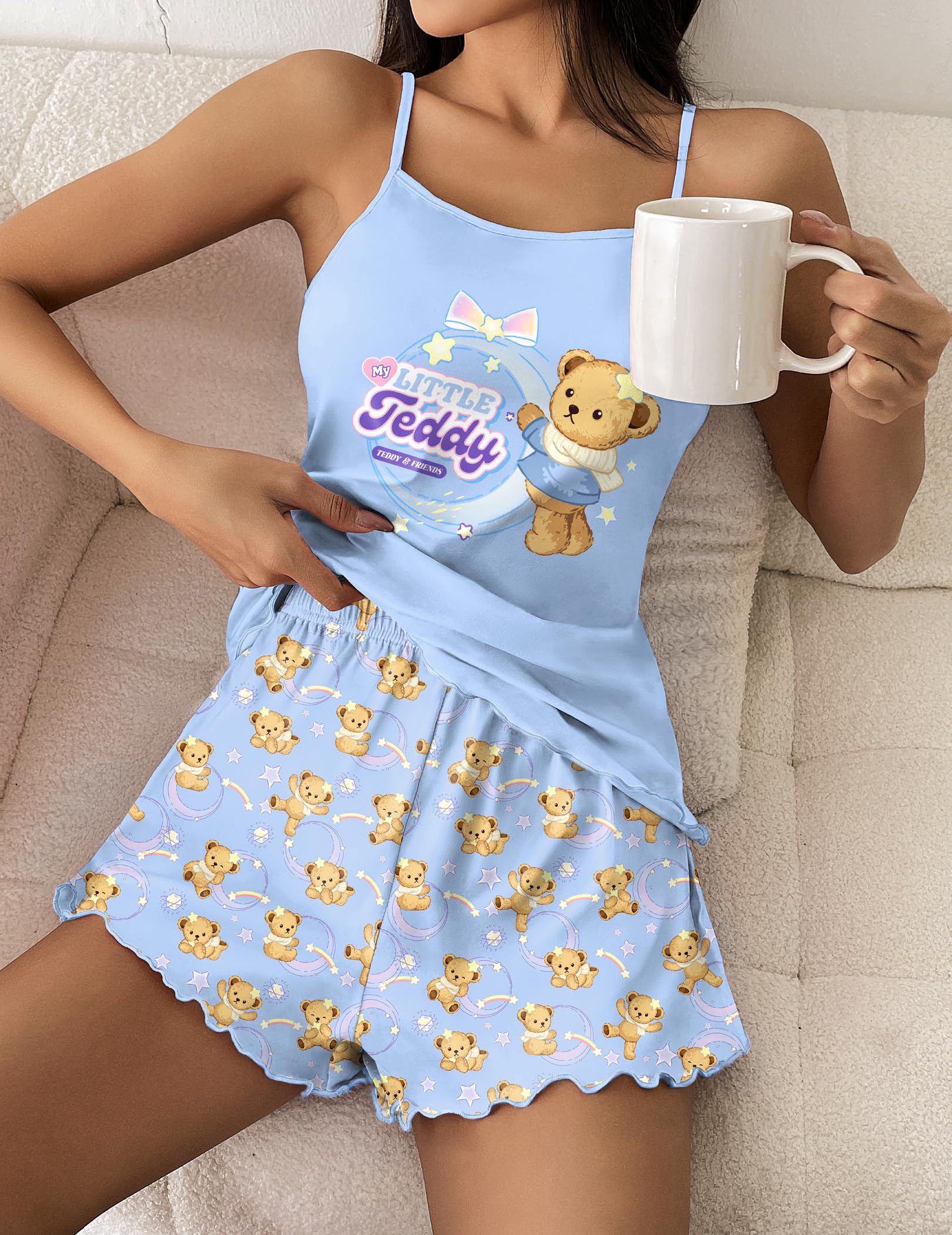 Comfy Material: Ekouaer Cami Shorts Set is made of 95% Polyester and 5% Spandex, skin-friendly and light weight. High-quality fabric is wear-resistant and not easy to fade