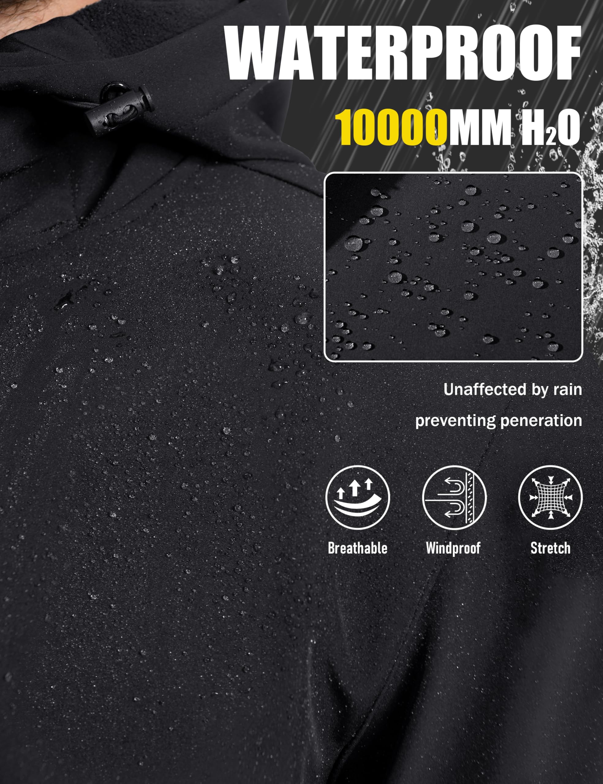 WATERPROOF & BREATHABLE - Men's rain jacket with hood is made of upgraded waterproof and breathable fabric with 10000mm H2O water repellency and 5000g/m2/24Hr breathablility, keeping you dry and comfortable, freeing you of walking in rain and snowflake