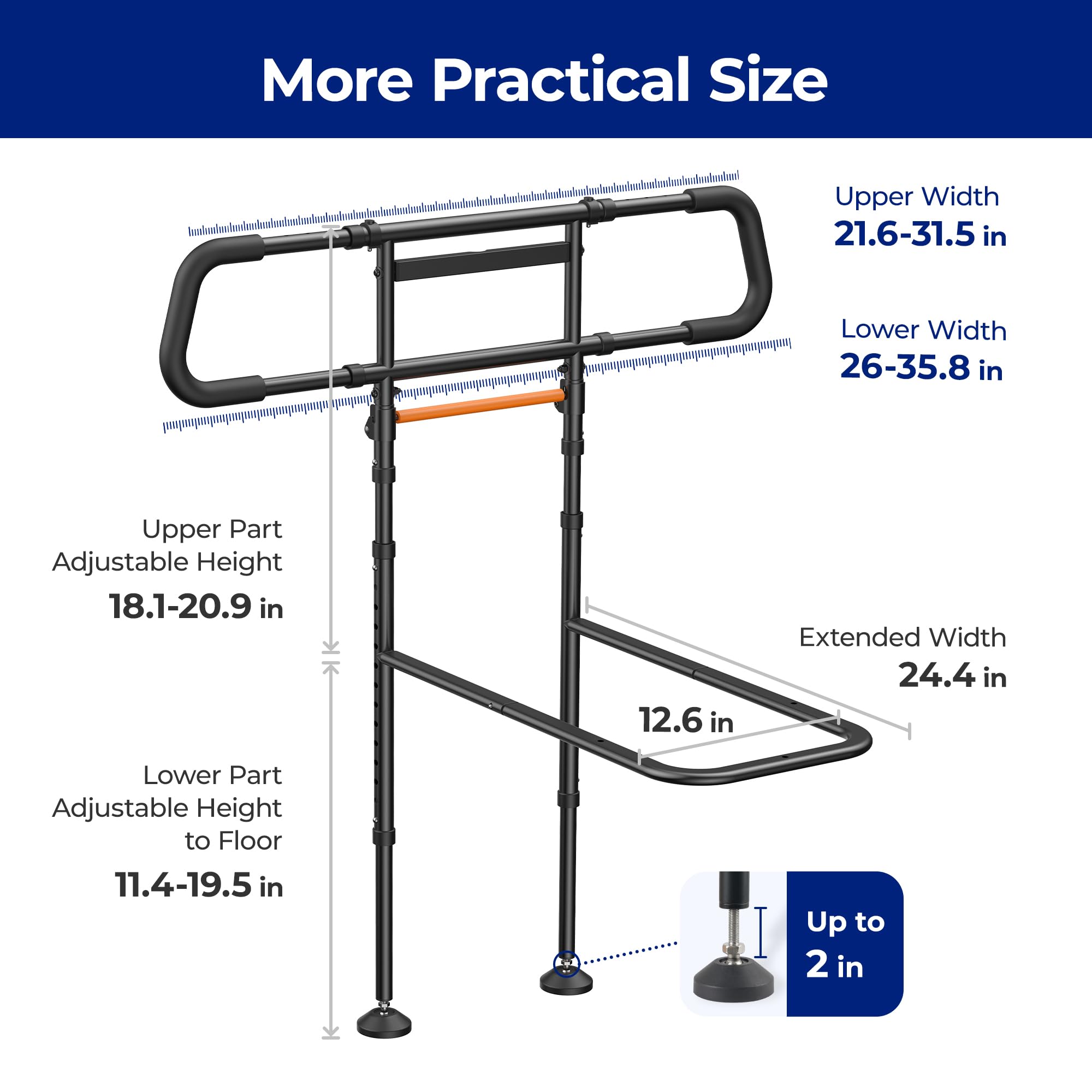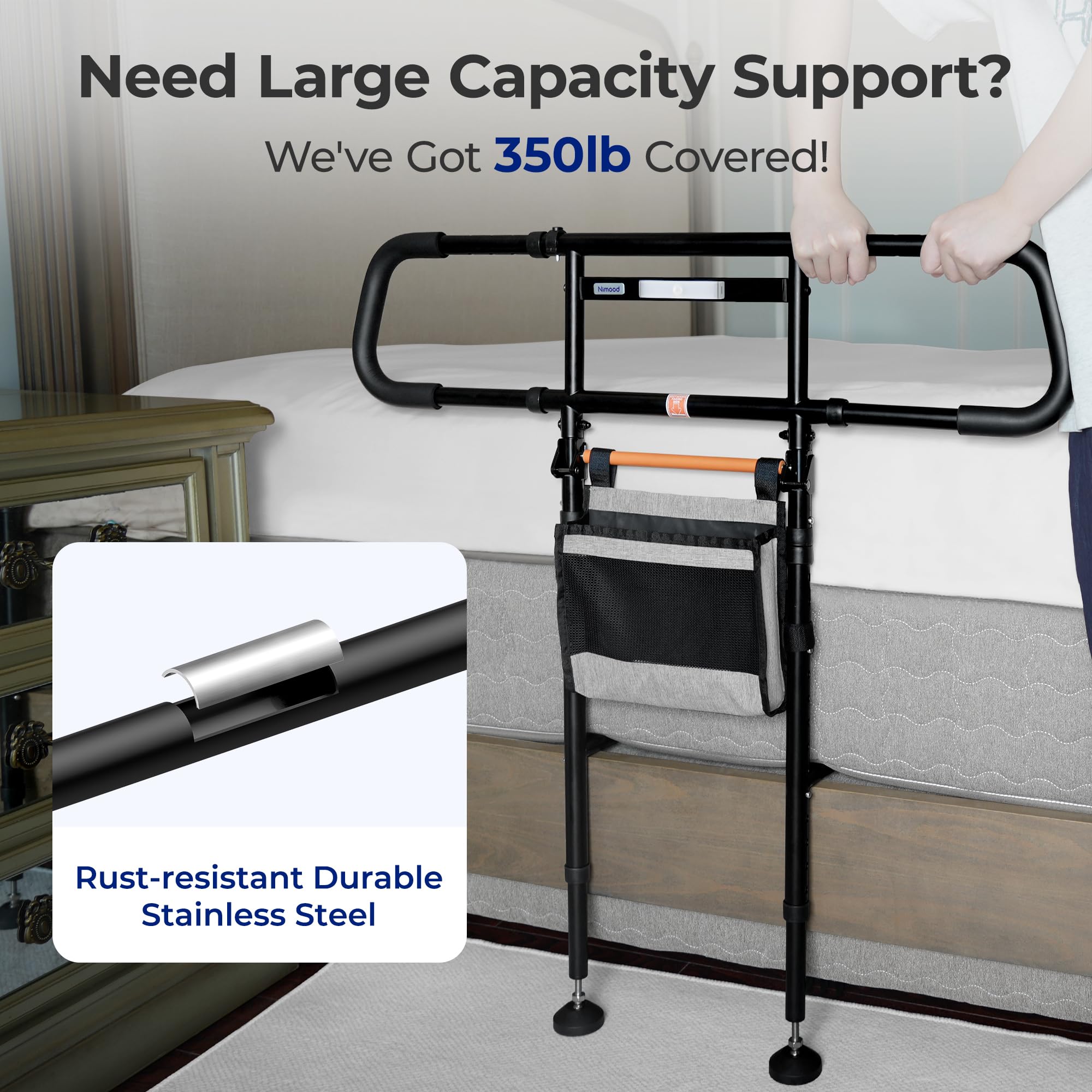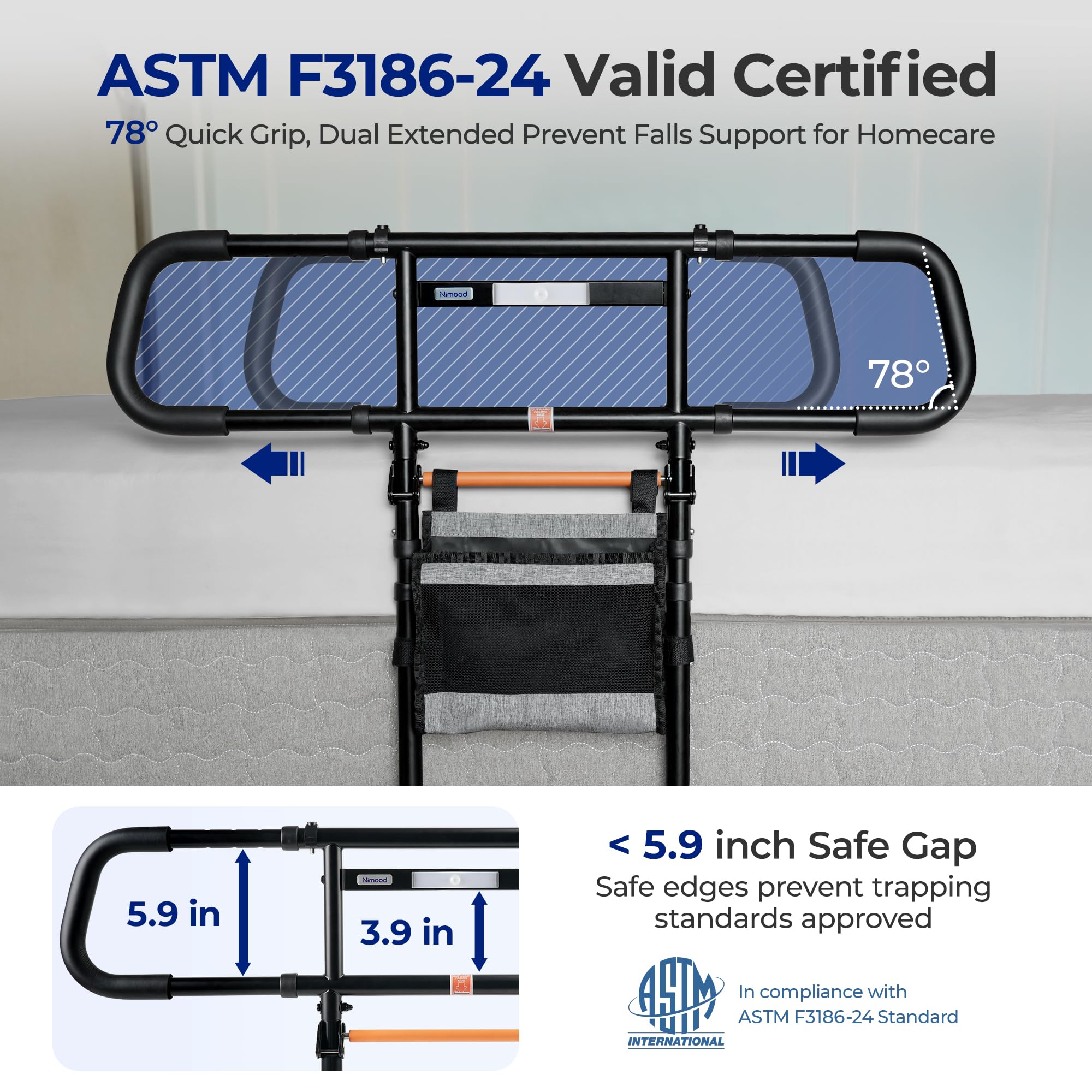 Double the Hold, Zero the Falls- Widened armrests offer enhanced stability and a 30% lower fall risk during nighttime movements compared to standard rails. The expandable dual-side handrails maximize grip area, minimize the movement distance of your hand, and provide steady support for seniors or those with limited mobility to rise safely
