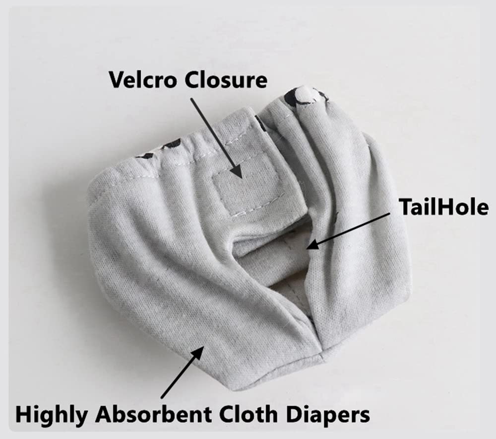 HIGHLY ABSORBENT SQUIRREL DIAPERS - The diaper pad is sewn into the diaper and has a waterproof outer layer to prevent leaks and damage to rugs, carpets, upholstered chairs and sofas.