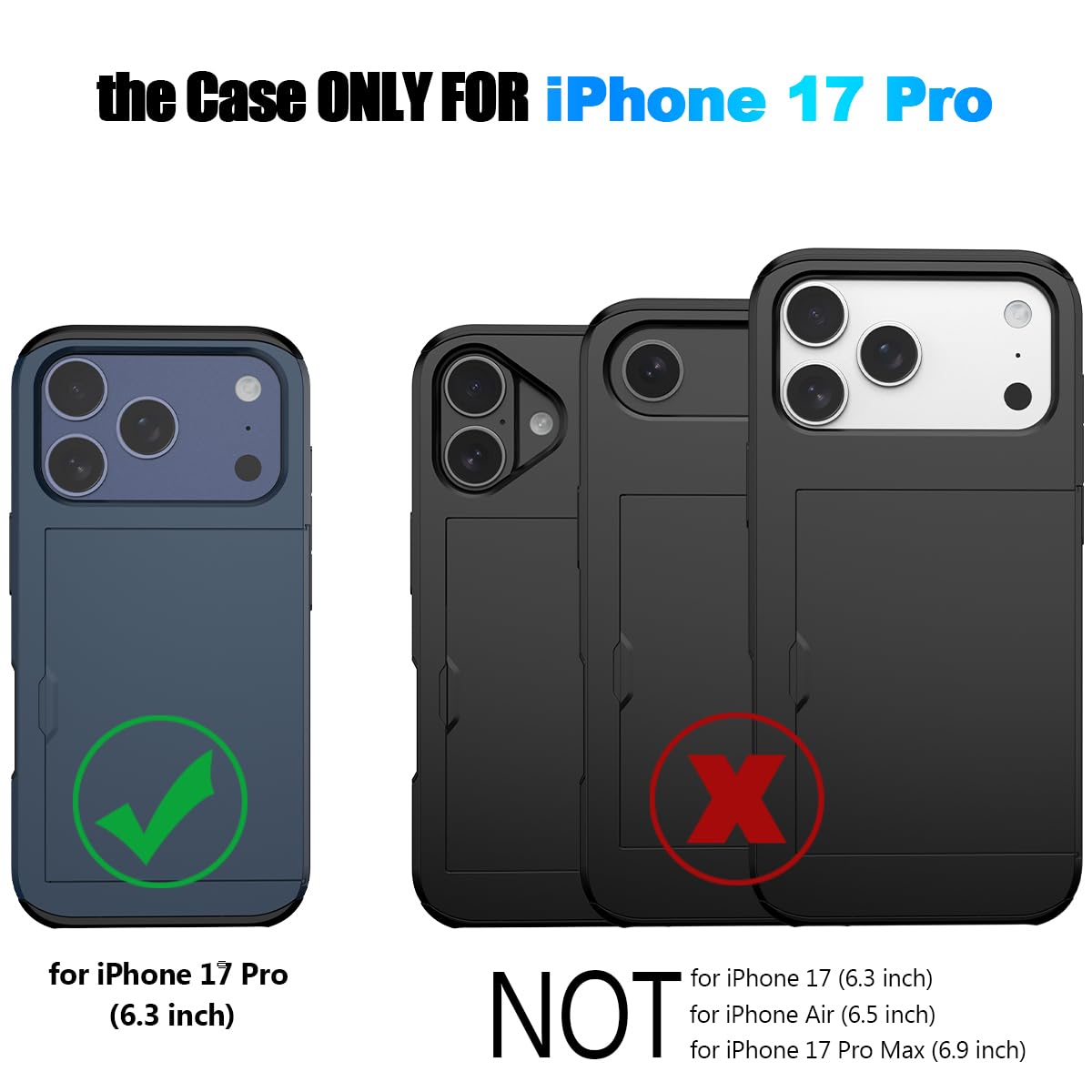 Precise Cutout: The cutout fits each button,camera,speakers and ports precisly,easy to press and access. Package include one phone case for iPhone 17 Pro with credit card holder ONLY.