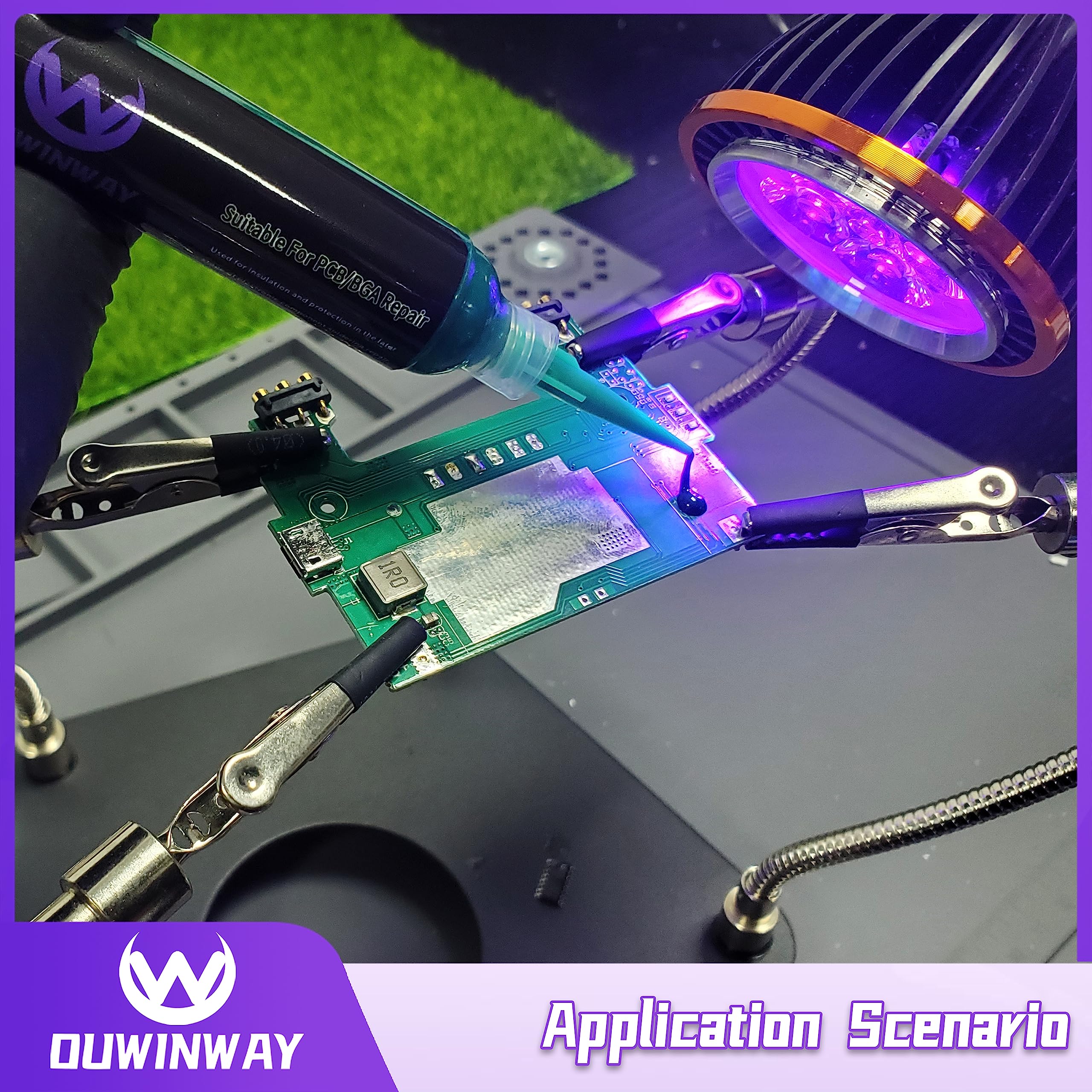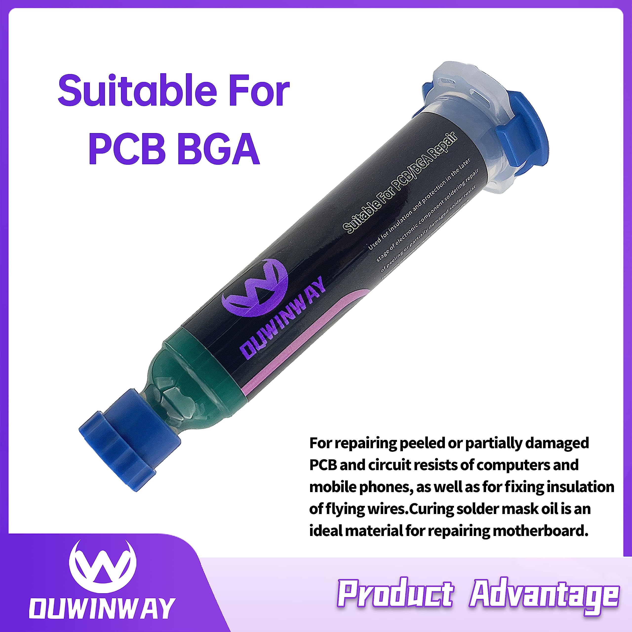 Ouwinway UV Curing Solder Mask Ink Is An Ideal Material For Repairing Motherboards And Insulating And Protecting Electronic Components After Welding. It Can Fix Peeled Or Partially Damaged PCB And Circuit Resists In Computers And Mobile Phones, As Well As Fix Insulation Of Flying Wires. This UV Curing Solder Mask Ink Provides Anti-Welding, Guard, Insulation, And Prevention Of Physical Disconnection Of Conductor Circuits.