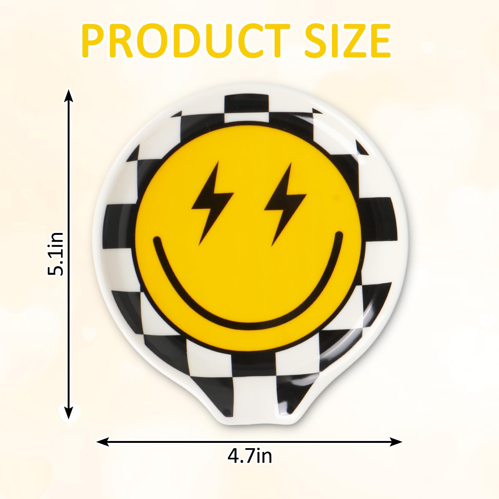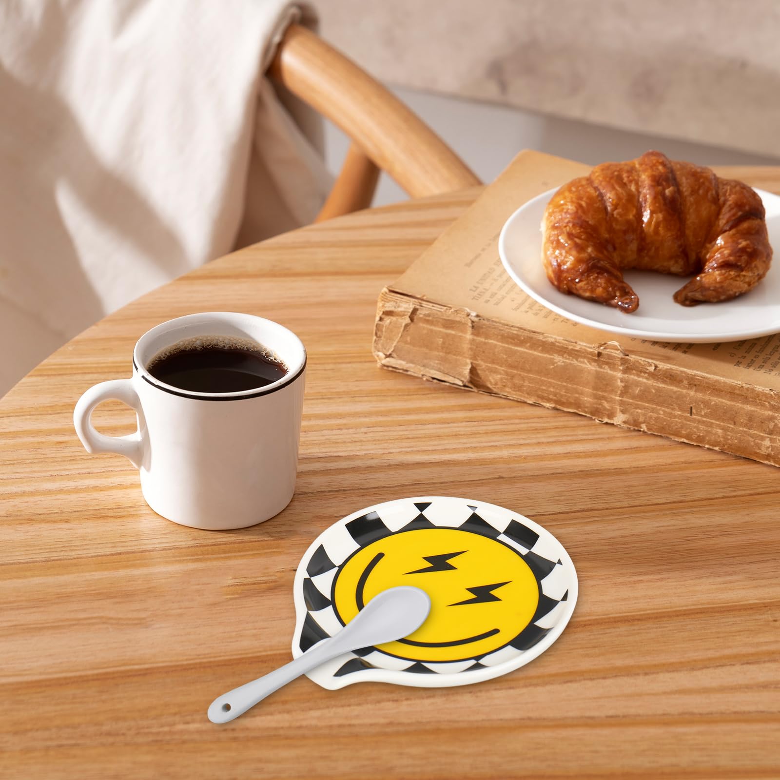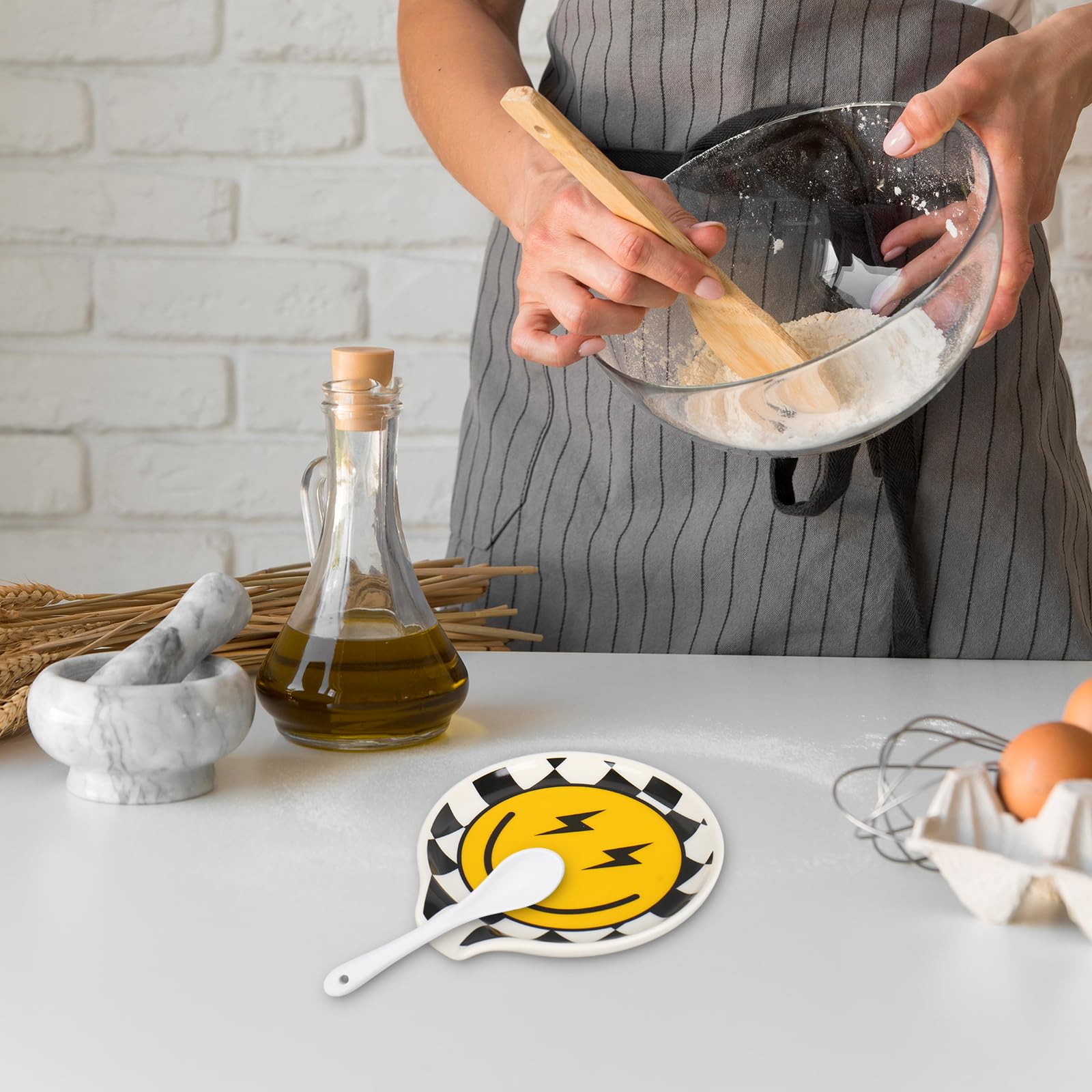 STYLISH DESIGN: These spoon rest is printed with white black checkered pattern with yellow smile face, creating a cheerful and inviting atmosphere in any kitchen setting