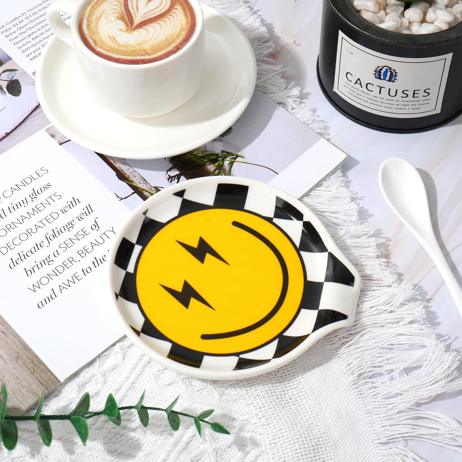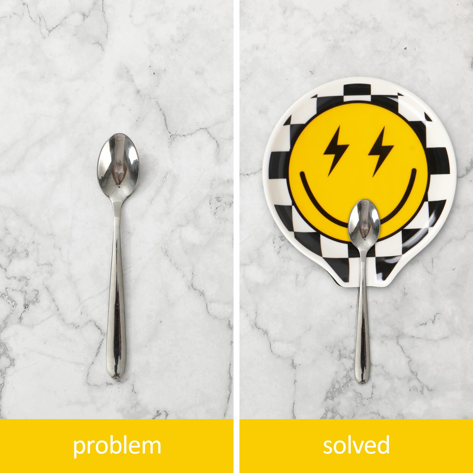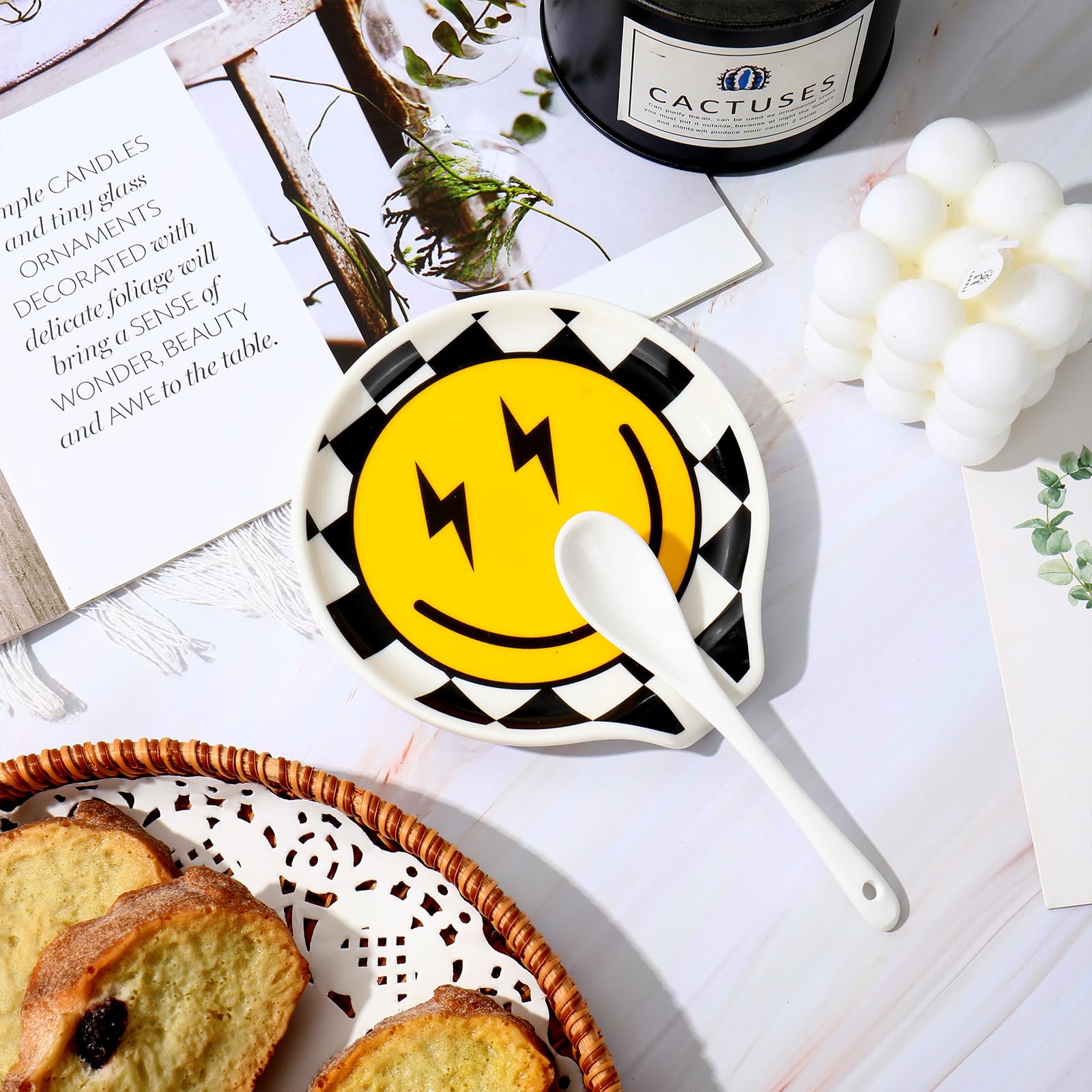 STYLISH DESIGN: These spoon rest is printed with white black checkered pattern with yellow smile face, creating a cheerful and inviting atmosphere in any kitchen setting