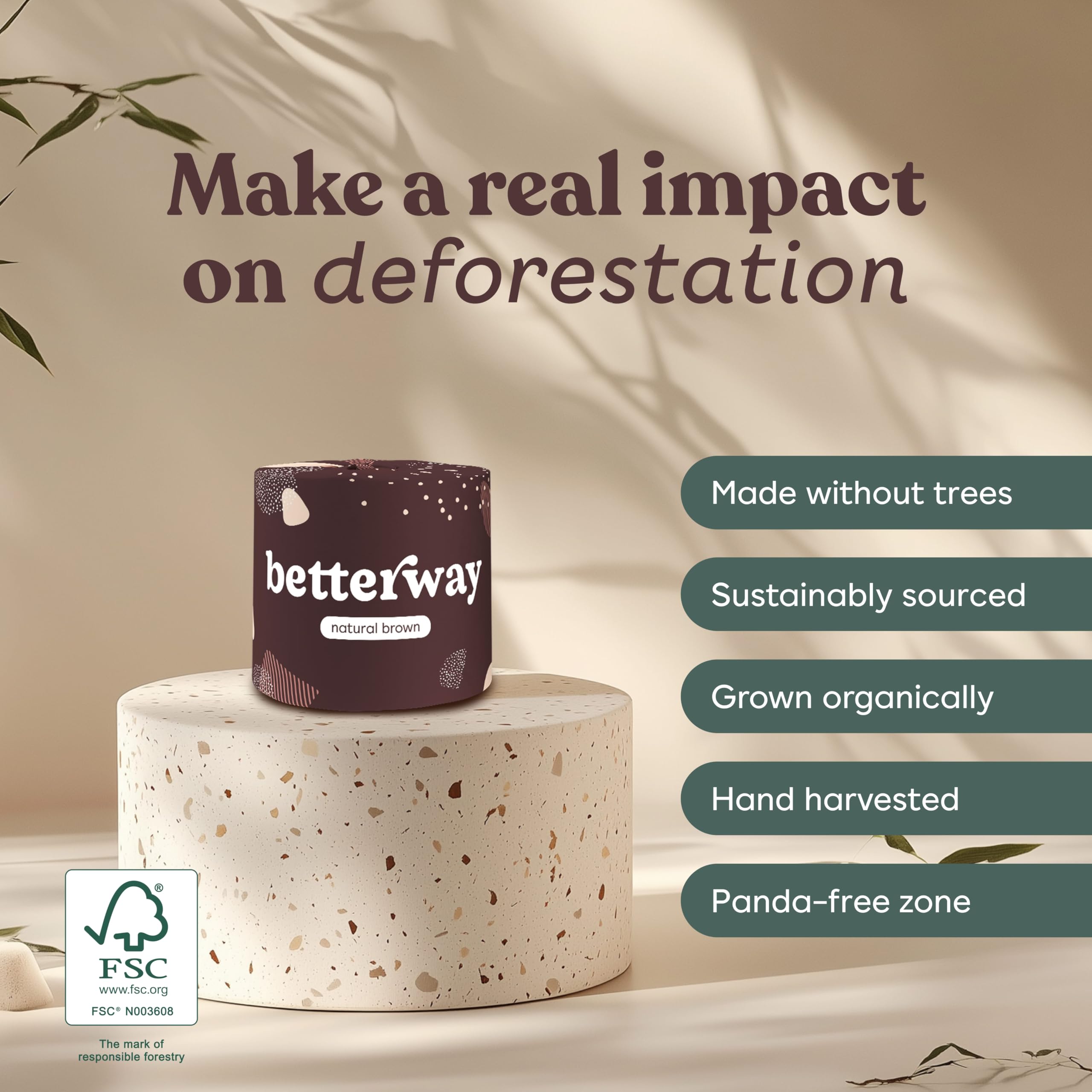 Eco-Friendly from Tree to TP: Choose sustainable bamboo that grows 39 inches daily without replanting. Make a direct impact on reducing deforestation. Wipe away your carbon footprint with every use!