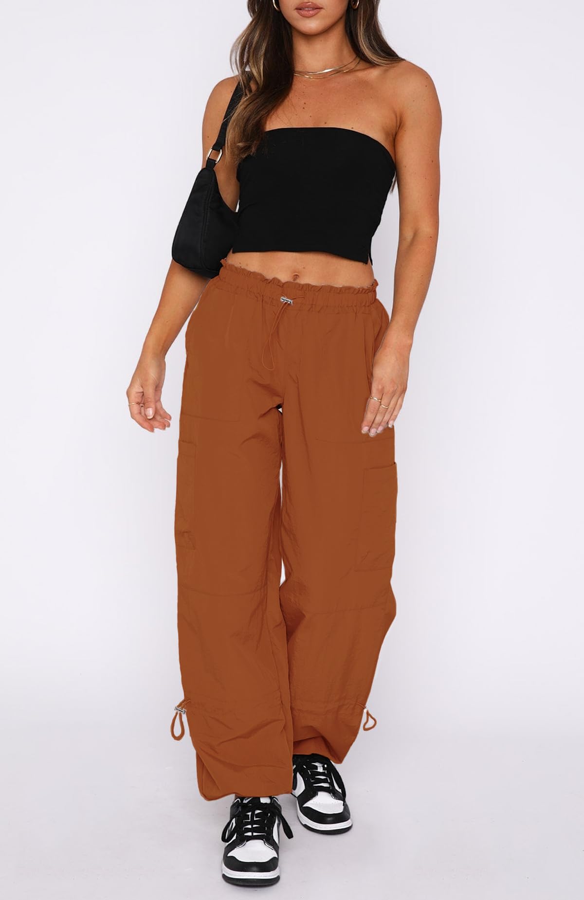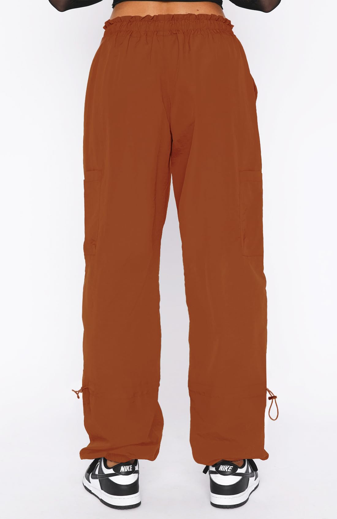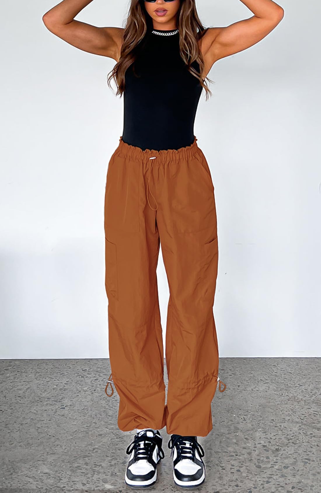 Description Waitfairy Women's Parachute Cargo Pants with Baggy Fit and Pockets Show off your confidence with these sexy, stylish parachute pants that hug your curves in all the right places. With a unique drawstring and elastic waistband, these women cargo pants offer a comfortable and secure fit that flatters all body types. The loose fit and wide leg design allow for maximum movement and breathability, making them perfect for outdoor activities such as hiking, camping, lounge,travel and jogging. Feature: 1) Parachute pants for women feature a wide leg fit, drawstring with toggle, elasticated waistband and cuffs, and side pocket design on legs 2) Material: 100% nylon Skin-friendly, soft, comfortable for all-day wear 3) With multiple pockets on the legs, you can easily carry all your essentials without having to lug around a bulky purse 4) Our parachute pants have a drawstring with toggle that allows for a customizable fit, ensuring that they fit perfectly on any body type 5) These versatile pants are perfect for any occasion - pair them with heels and a blouse for a night out or sneakers and a t-shirt for a casual look 6) Say goodbye to boring pants: Our parachute pants come in a variety of bold and vibrant colors that will add a pop of fun to any outfit 7) color: black/army green/basil/nude/brown/orange Product: cargo pants,parachute pants for women, Y2K pants,versatile pants, outdoor pants, stylish pants, comfortable pants, wide leg pants, loose fit pants, casual pants, dressy pants, multiple pockets sweatpants,Hippie Pants,low rised low waisted pants,Streetwear