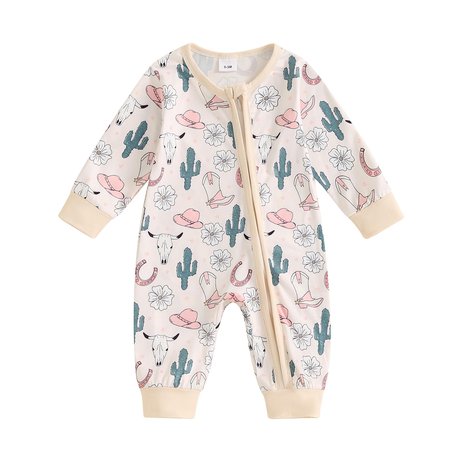 Designs:Baby girl cowgirl outfit,baby girl western outfit.Pink cowgirl boots print,baby girl jumpsuit,ruffle long sleeve romper,crew neck footie onesie,zipper closure.Baby western clothes girl,baby girl cowgirl clothes,baby girl country clothes,adorable
