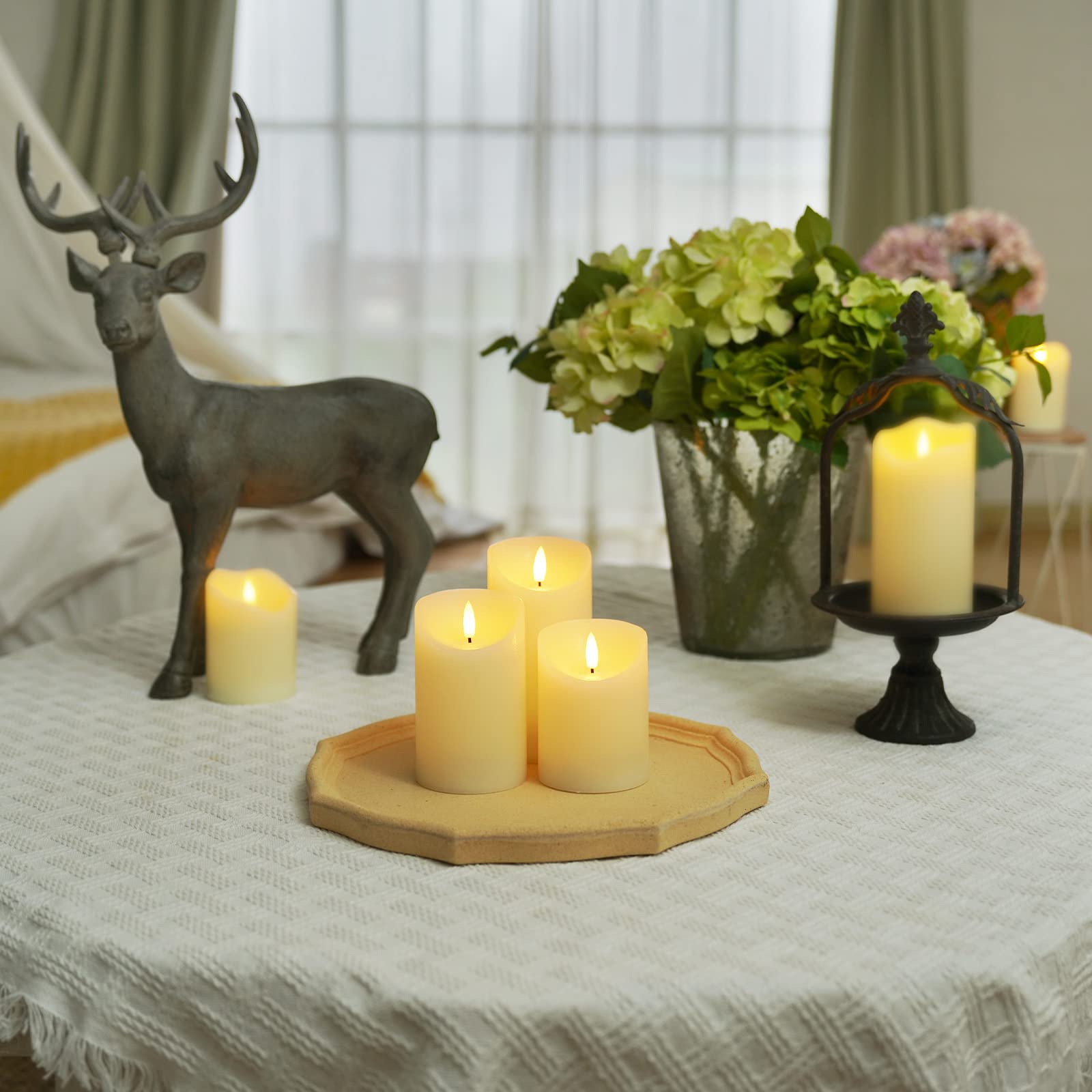 Safe & No Fire Risk: No worries about fire hazards, smoke, messy dripping wax, or stained tablecloth. Safe to use around children and pets. With amazing LED pillar candles set, you can have perfect ambient evenings with peace of mind.
