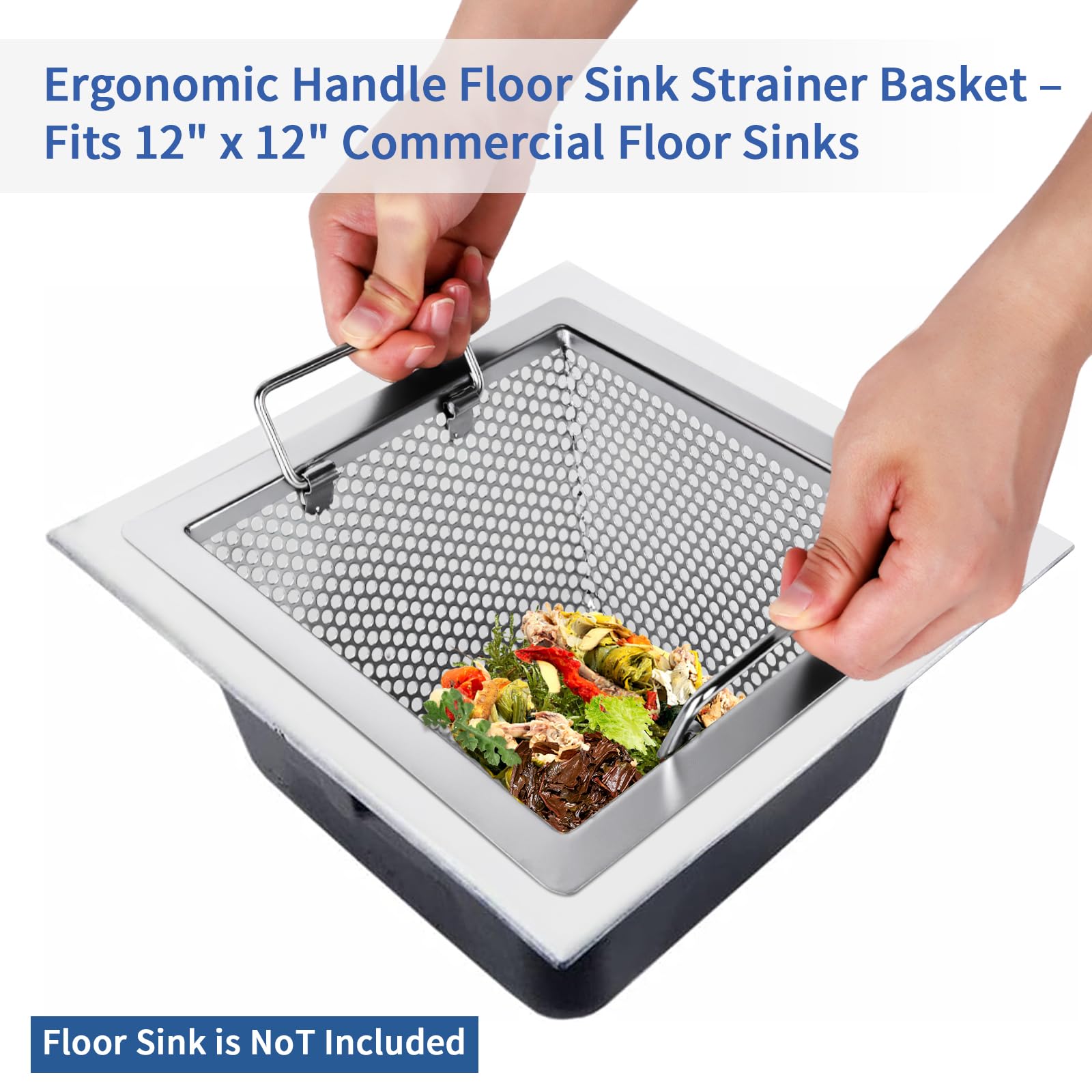 Versatile Use: Ideal for restaurants, bars, buffets, and eateries, this floor sink basket efficiently drains water from food and other items, making it a must-have for any commercial kitchen. Designed to fit standard 12" x 12" floor sinks (Tip: Please use gloves to avoid cuts from edges during installation)