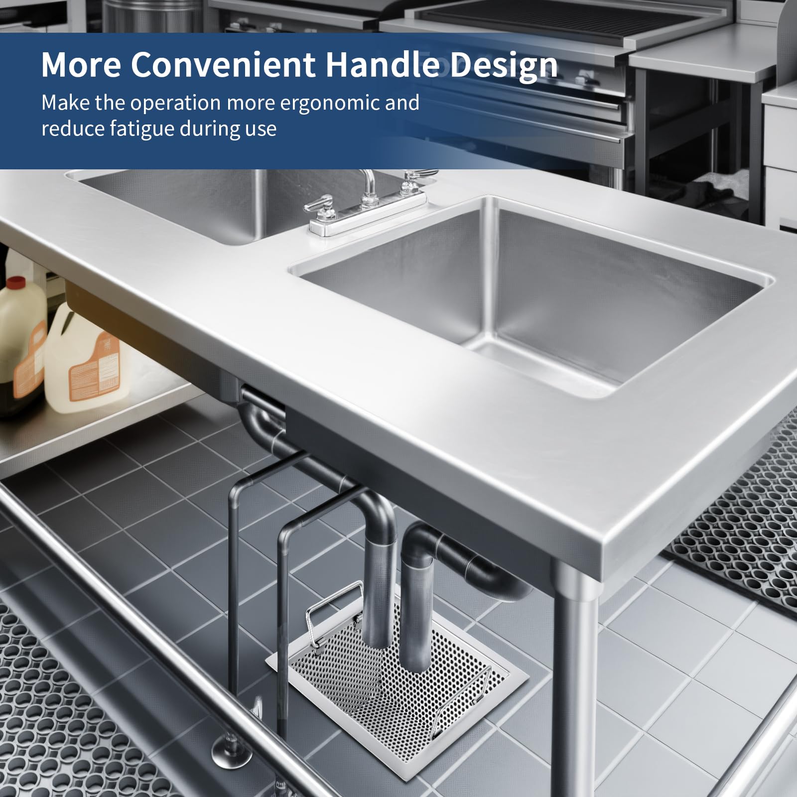 Ergonomic Handle: The ergonomically designed handle allows the floor sink strainer to be lifted effortlessly without the need for complex tools or strenuous effort, reducing fatigue during use and making cleaning and maintenance more convenient