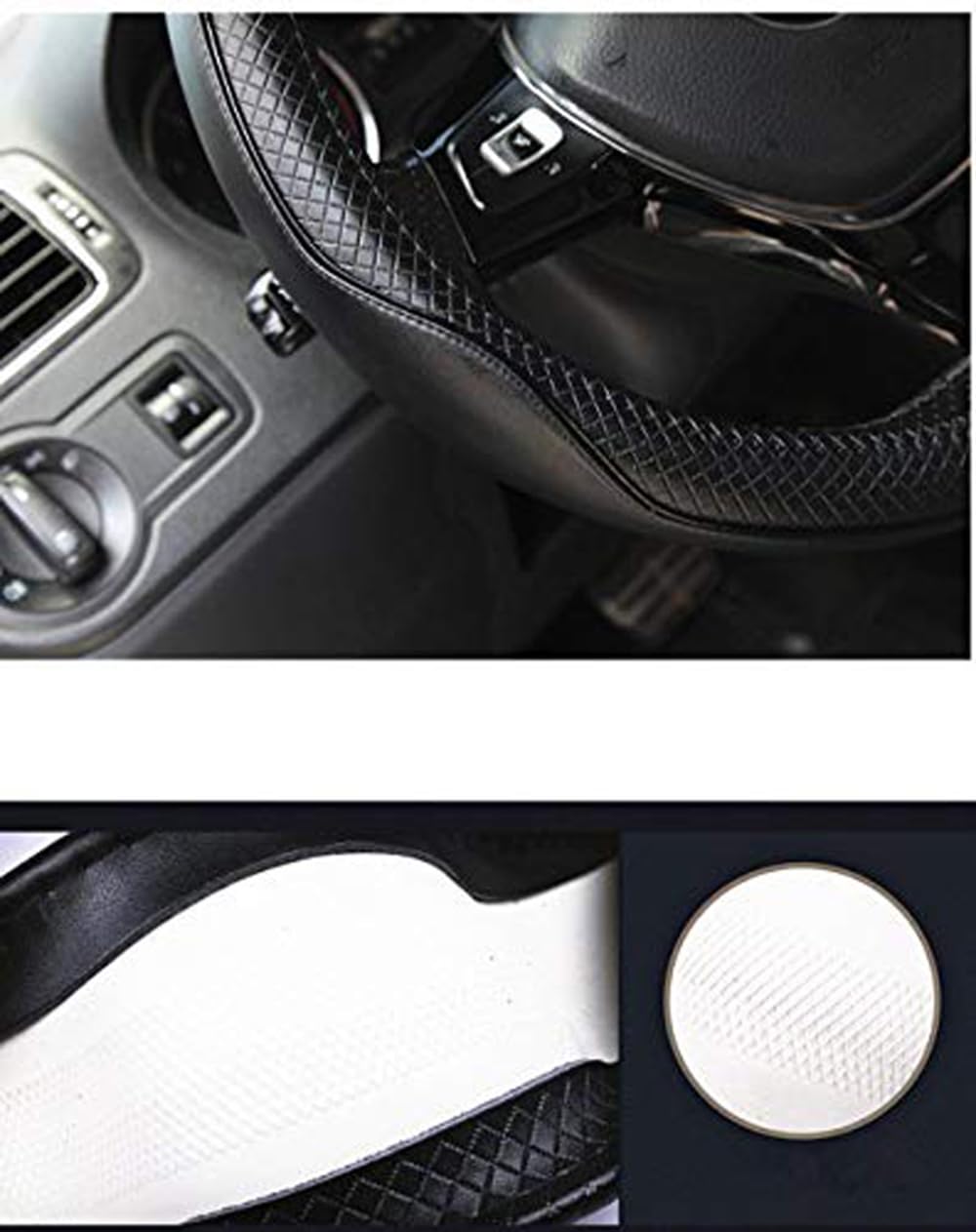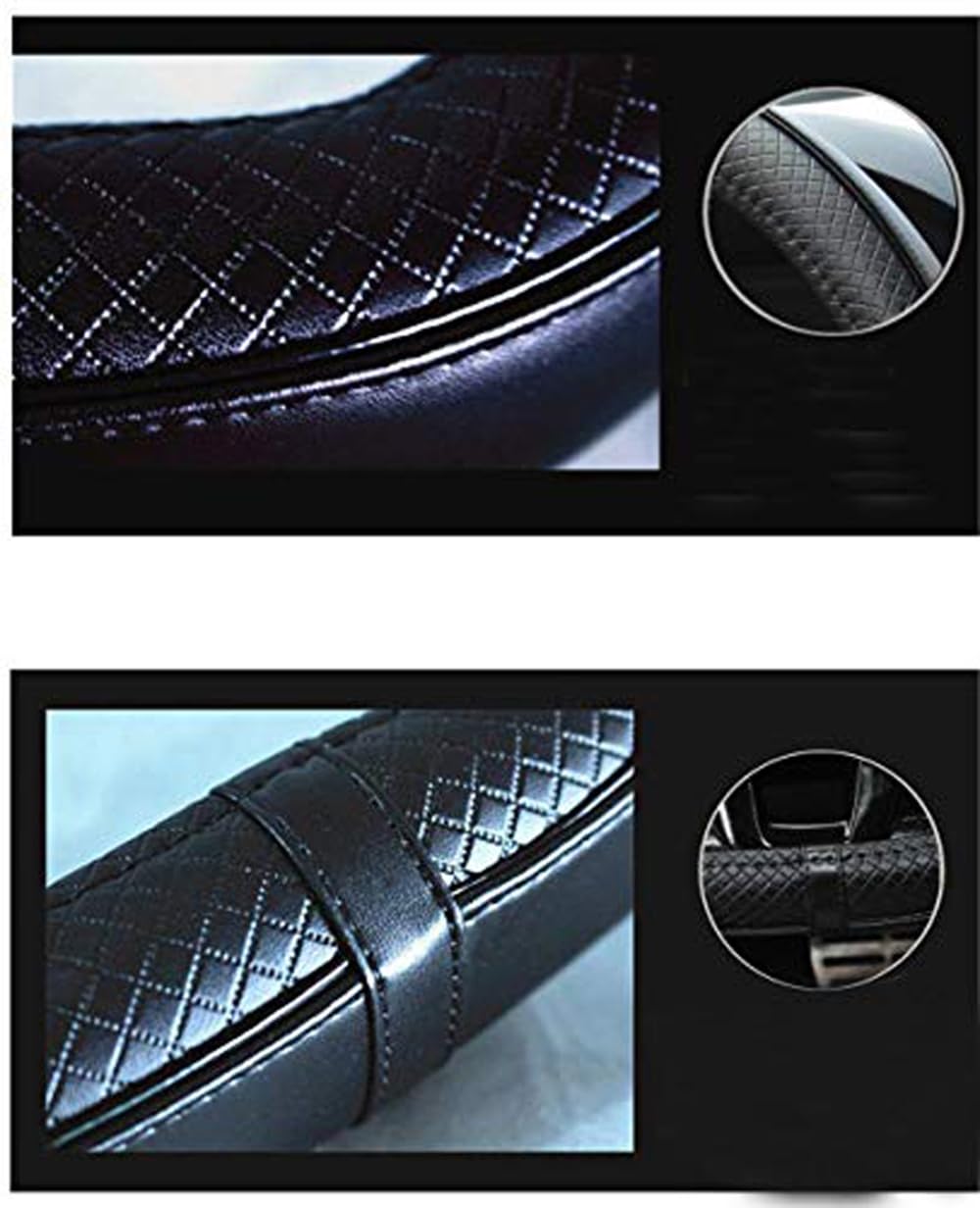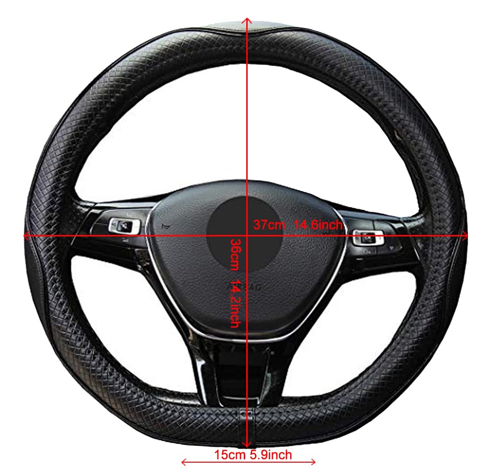 D shape steering wheel covers fit flat bottom middle size steering wheels with outer diameter of 14.5" to 15". If you are not sure whether our products fit your car, you may leave us a message. D shape steering wheel covers are made of microfiber PU Leather (Micro fibril leather Micro fibril PU) Microfiber leather is the best bonded leather, feels is better than real leather, Wear-resisting, cold resistant, breathable, ageing resistance, soft texture, environmental protection and beautiful advantage, has become the most ideal choice instead of natural leather. Great grip increased safety The inner side of these steering wheel covers is made of natural rubber and with anti-skip veins design which helps driving safer, A better grip on the wheel gives you more control on the road. Nice Looking Double color stitching, Very nice looking, modern, sporting, suit for male and female Better feels: Breathable, soft padding, contour shape and massaging design. Durability: Heat resistant, cold resistant and wear-resistant. Easy to put on it is not hard to put on; it may take you 2 to several minutes. It was just the last part getting it on that was slightly stubborn.