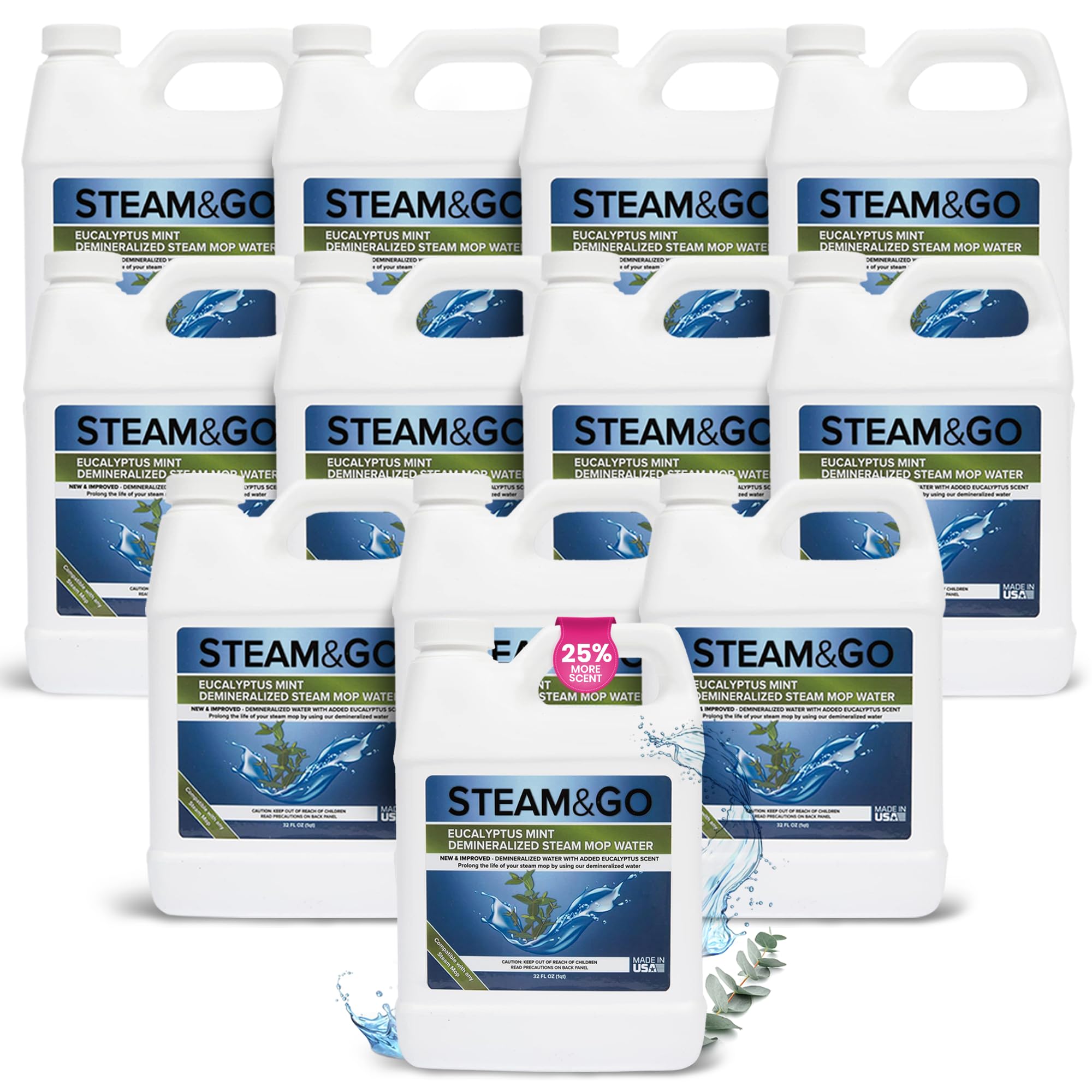 POWERHOUSE MOPPING SOLUTION - Maximize the filtration of your steam machine. Use Steam & Go’s demineralized water multi-surface cleaner. Our floor cleaning solution removes spills, dirt, and other residues to keep your floor smelling and looking clean.
