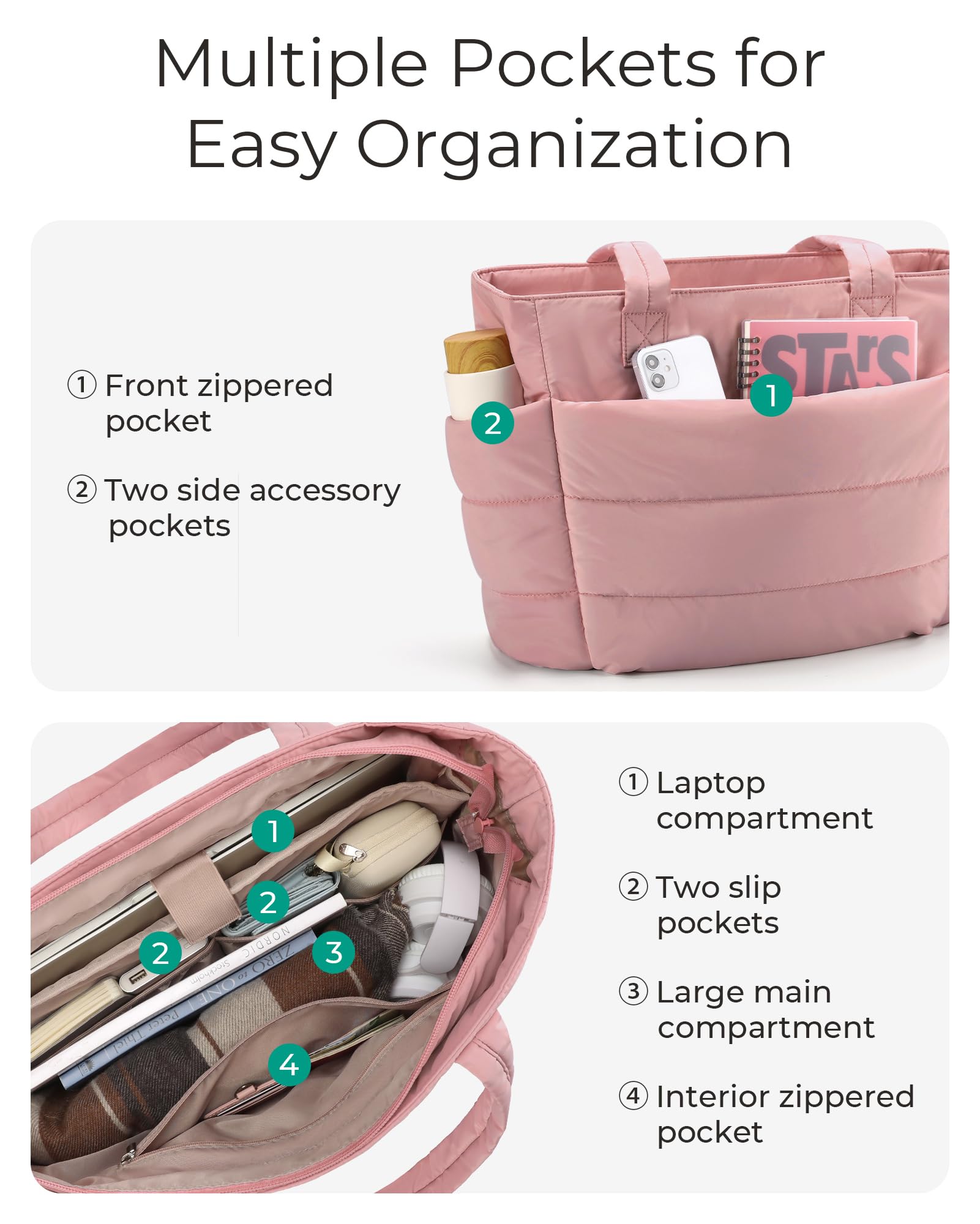 Versatile Tote: It can be used as a work bag, laptop bag, gym bag, beach tote bag, casual shoulder bag, or travel bag. Suitable for work, beach, travel, shopping, gym and more occasion