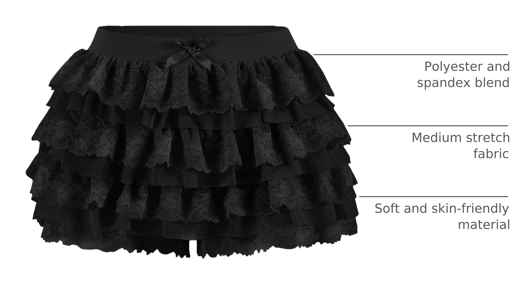 Material: Women's layered ruffle trim lace shorts are crafted from medium stretch fabric. This fabric is soft, skin-friendly, breathable and lightweight, which enables you to wear these shorts comfortably