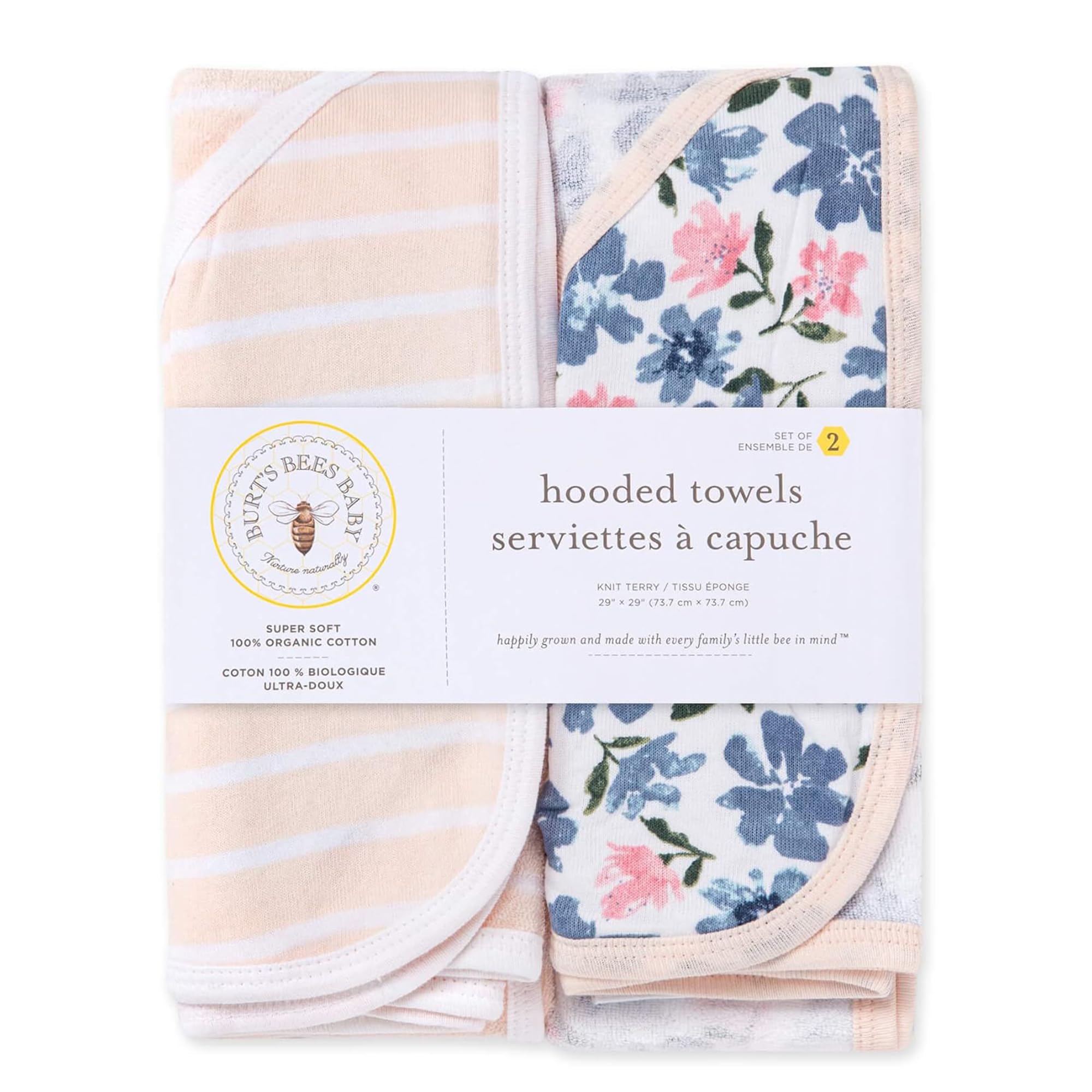 Add a splash of fun to bath time with our Burt's Bees Baby Infant Hooded Bath Towels! These baby bath essentials are crafted from soft and absorbent 100% organic cotton. These sustainably made hooded baby towels are kind to the planet and kinder to your baby's sensitive skin, ensuring that every pat dry is a stroke of love and natural goodness. These towels are an absorbent knit terry fabric on the inside, and smooth on the outside. The feature a perfectly sized hood that is not too large or deep, so it does not cover the little one’s face. Measuring 29 x 29"", these towels have your back (and front, and sides) covered, making them the ultimate baby bath must-have for bath time, pool days, and beach adventures alike. These durable cotton bath towels get softer with each wash and keep their shape, ensuring that your baby's bath time remains a realm of comfort and joy as they grow. These towels are a delightful blend of practicality and playfulness, making bathtime a gateway to memorable moments. They are perfect for gifting or adding to your own baby registry or baby essentials collection.