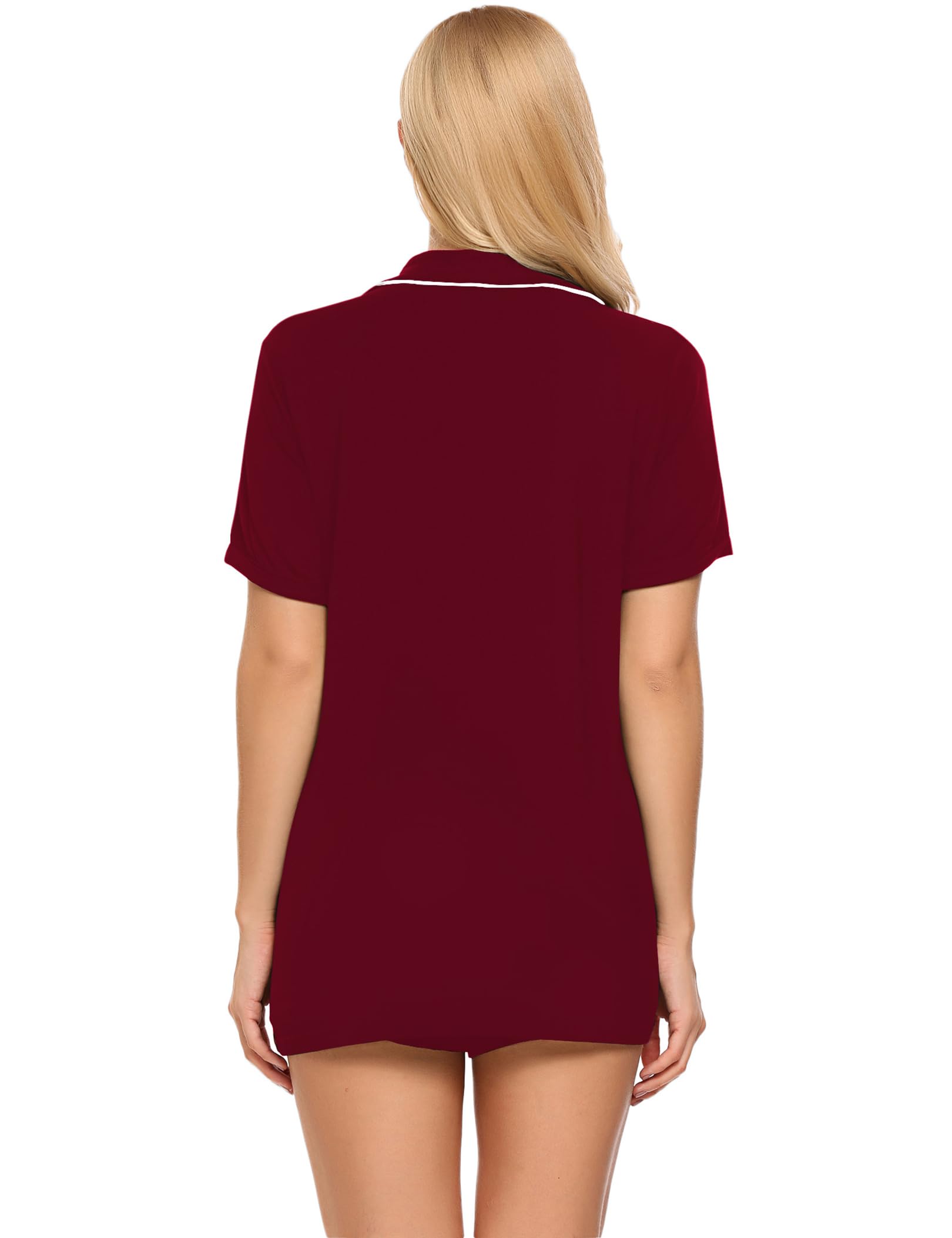 VERSATILE STYLE: Classic two-piece loungewear with short-sleeve top and boxer shorts. Relaxed fit suitable for sleeping, lounging, or casual wear.