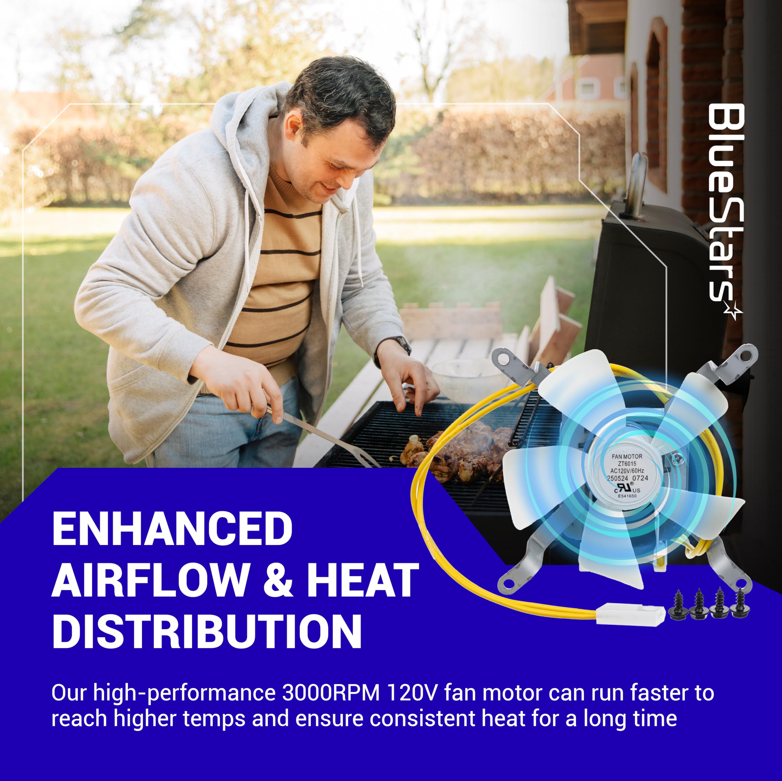 ENHANCED AIRFLOW & HEAT DISTRIBUTION: The high-performance 3000RPM 120V fan motor can run faster and reach higher temps than the original so that you can shorten your valuable time in cooking. It helps reduce large temperature swings to ensure minimal loss so that it can run for a long time and won't be burnt out easily.