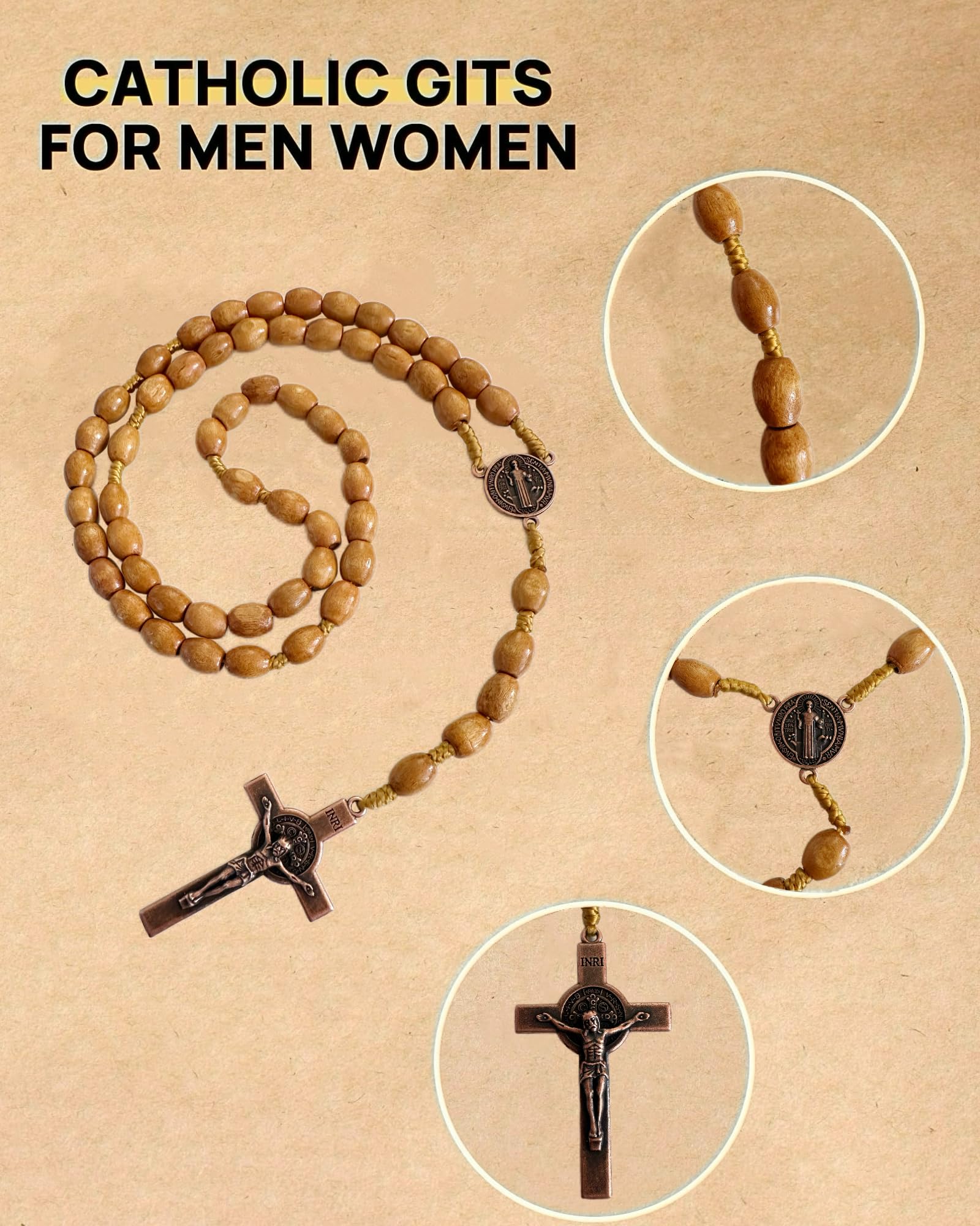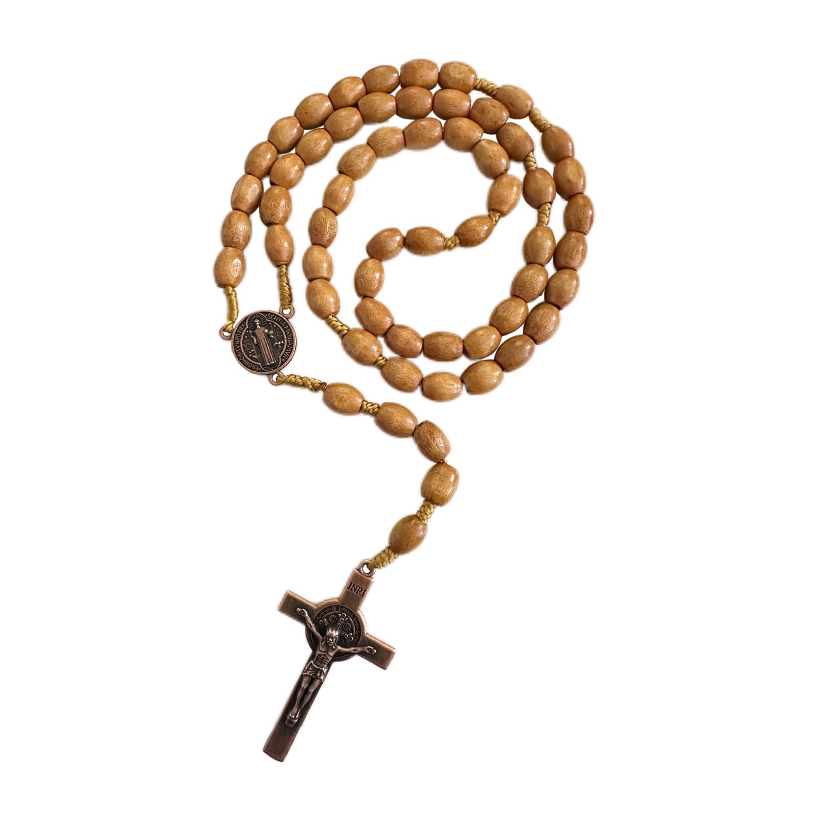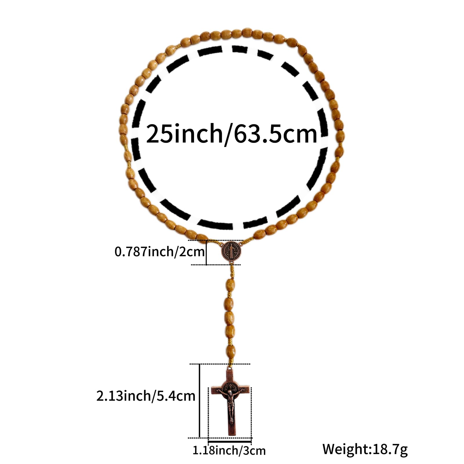 Traditional Design: Crafted with brown wood beads, a Saint Benedict medal, and a crucifix, this rosary honors Catholic traditions.