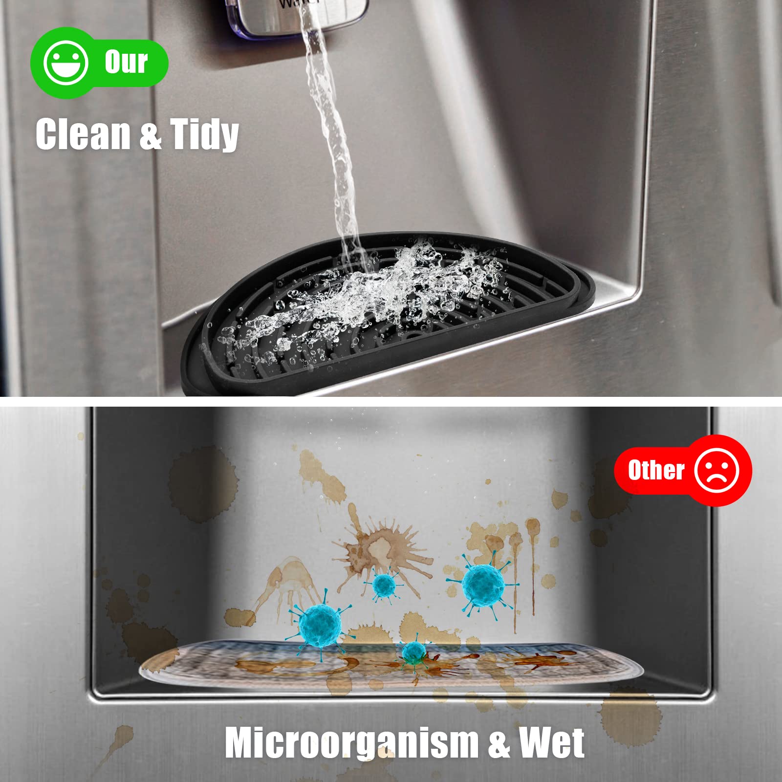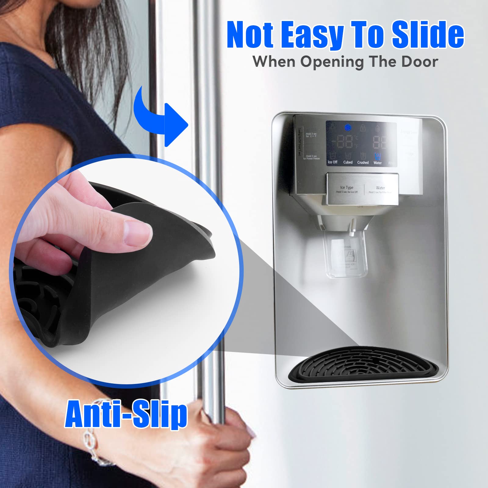 【Anti-Slip】 The refrigerator drip trays is designed with silicone, so the ice and water dispenser pan can stay in place when opening or closing the fridge door.