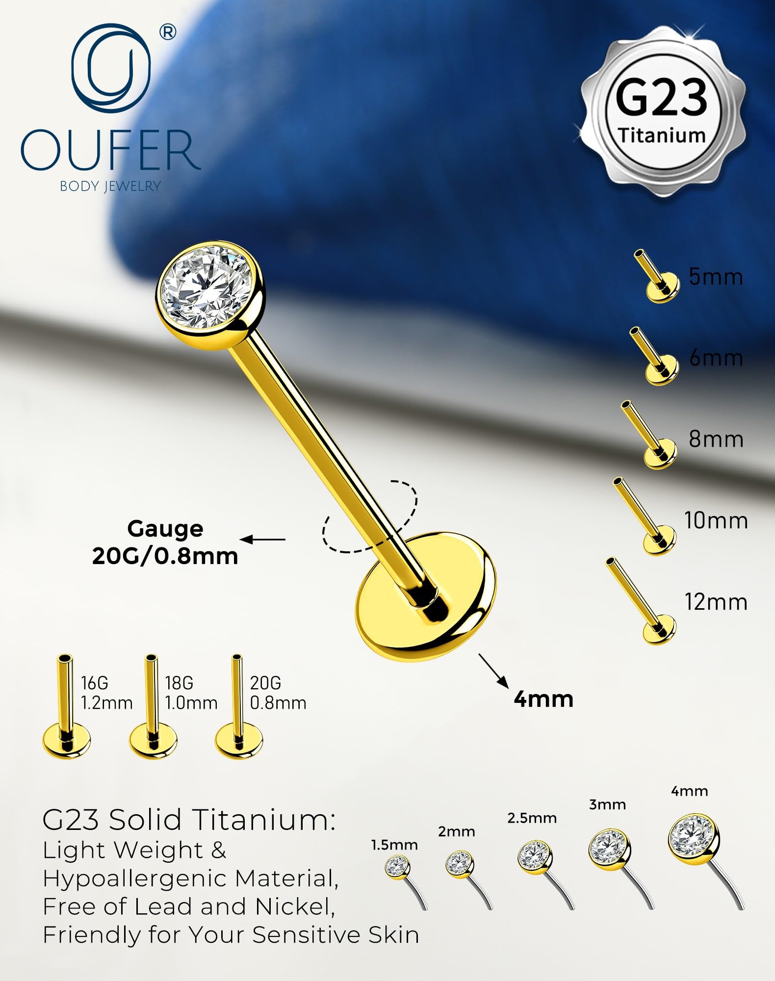 【G23 Titanium for Sensitive Skin】:Made from implant-grade titanium, perfect for new piercings or sensitive skin.