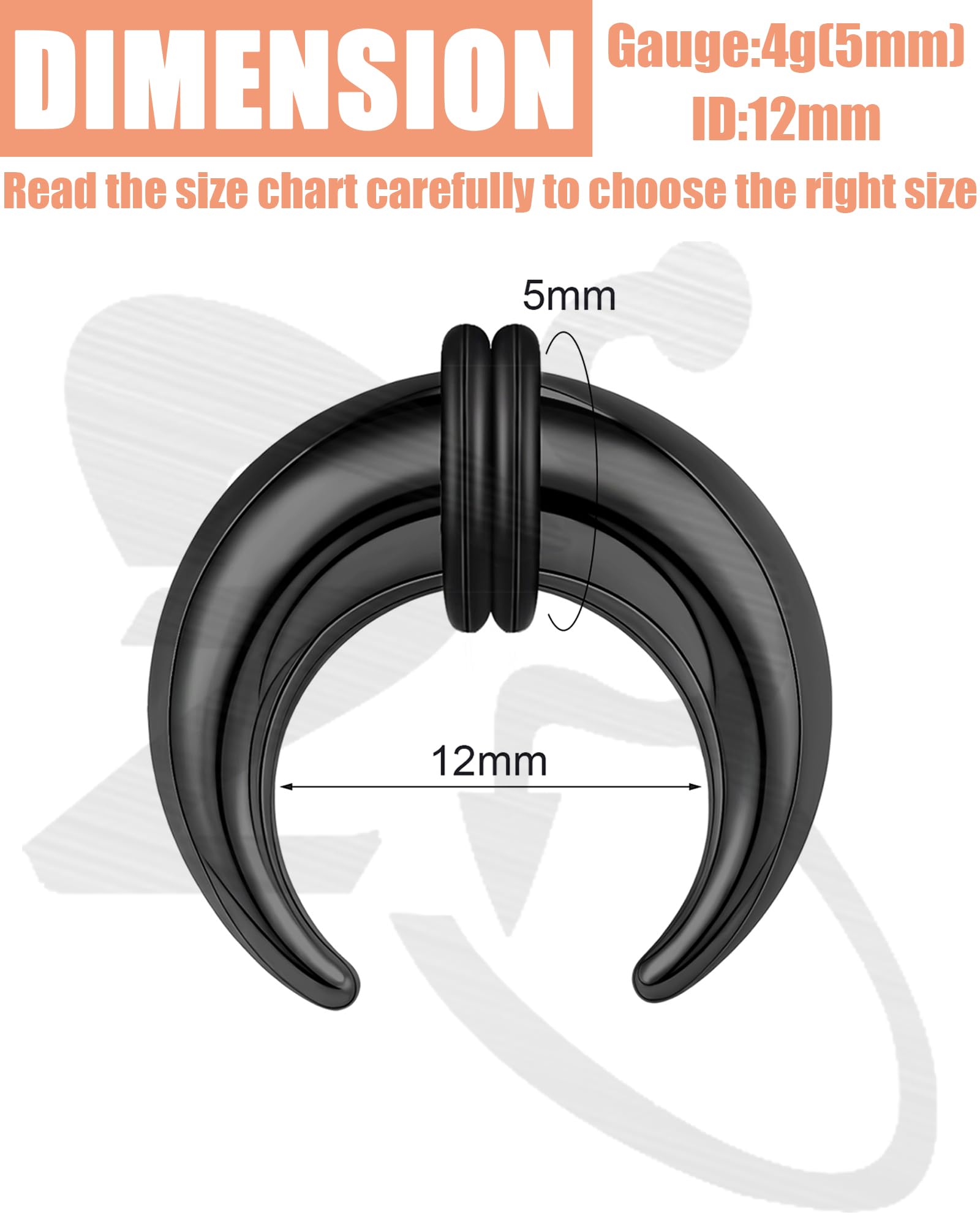 ❀Septum Pincher Size Reference——Septum piercing taper gauge: 16g(1.2mm), 14g(1.6mm), 12g(2.0mm), 10g(2.5mm), 8g(3.0mm), 6g(4.0mm), 4g(5.0mm), 2g(6.0mm); Inner diameter: 8mm/ 10mm/ 11mm/ 12mm. Select suitable size to easily expand your piercing place without too much pain.
