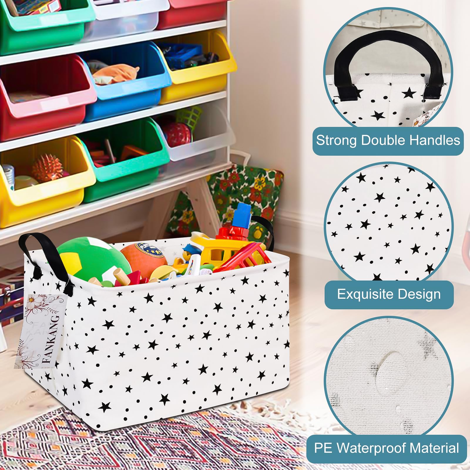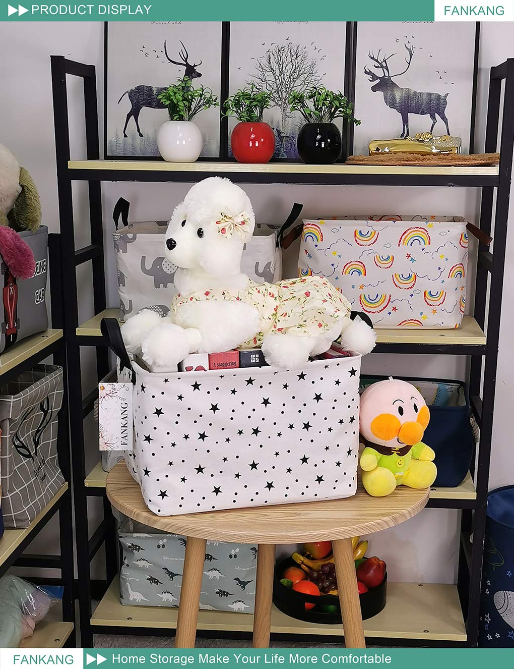 This storage bag suitable for adult, teens, kids, children; suitable for toys, books, clothes and other stuff, suitable for home and school. Why choose our large storage basket? - Spacious capacity, store more stuff. - Practical side handles for easy toting. - Collapsible design for compact, convenient storage. - Cute lovely animal pattern design. - Multiple function, suitable for any place. Features: - Perfect organizer for play rooms, allowing for the storage of toys, books, blocks, stuffed animals, toys with multiple pieces, train sets, or board games. -reading materials, as well as in the bathroom for towels, or as a laundry hamper.