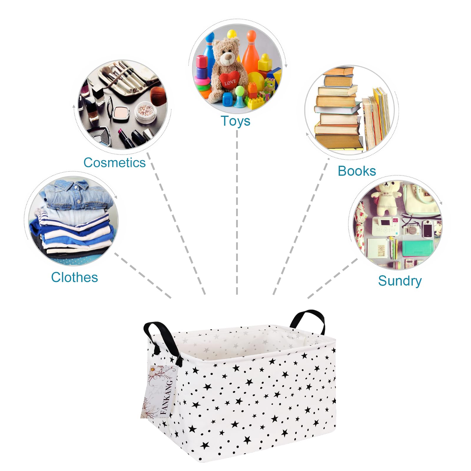 Multiple functions: you can use it to collect toys, dolls and story books for your kids; you can use it as a hamper to put your clothes, socks and shoes in; you can even use it as a shopping bag. And there are more uses waiting for you to explore.