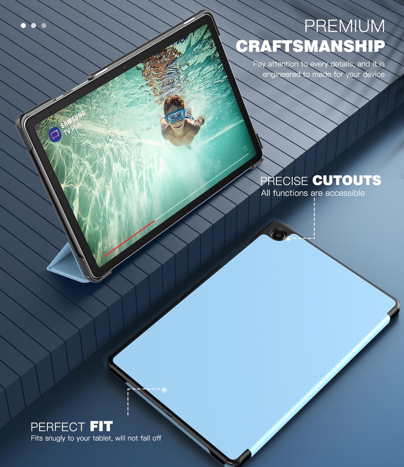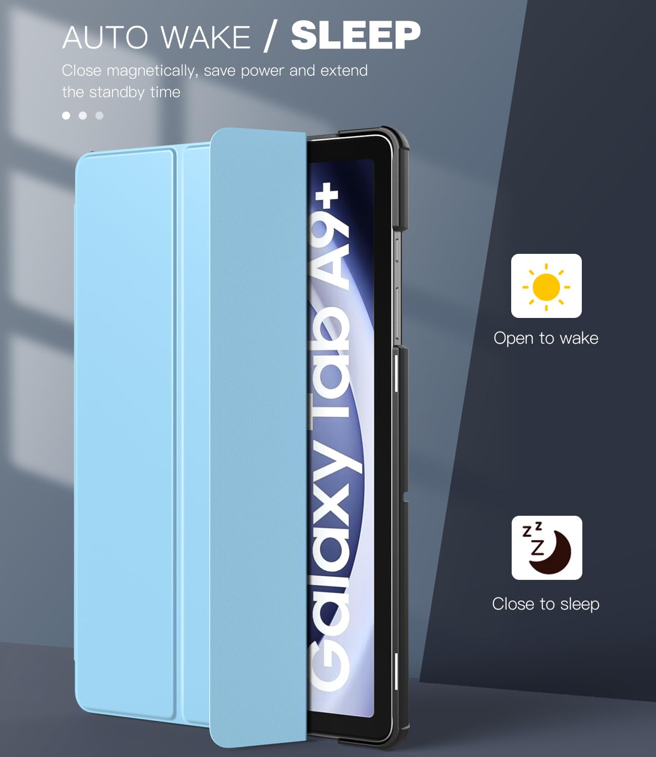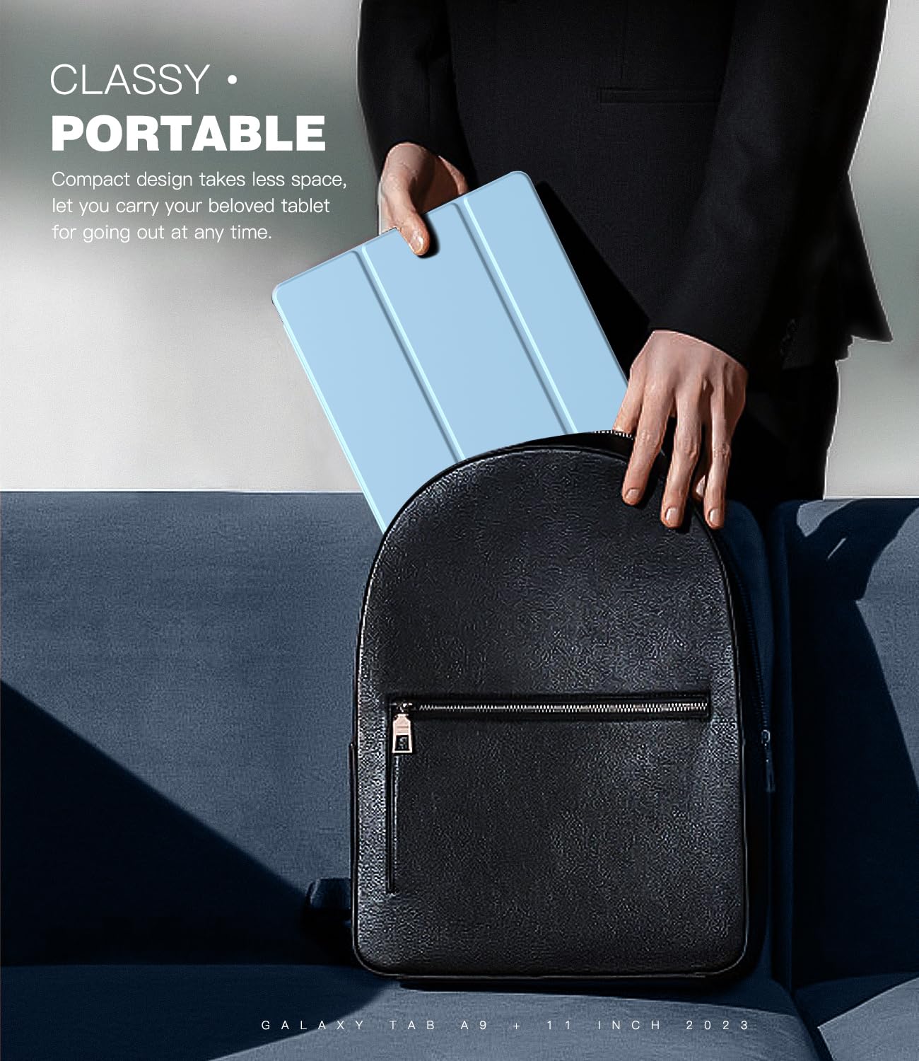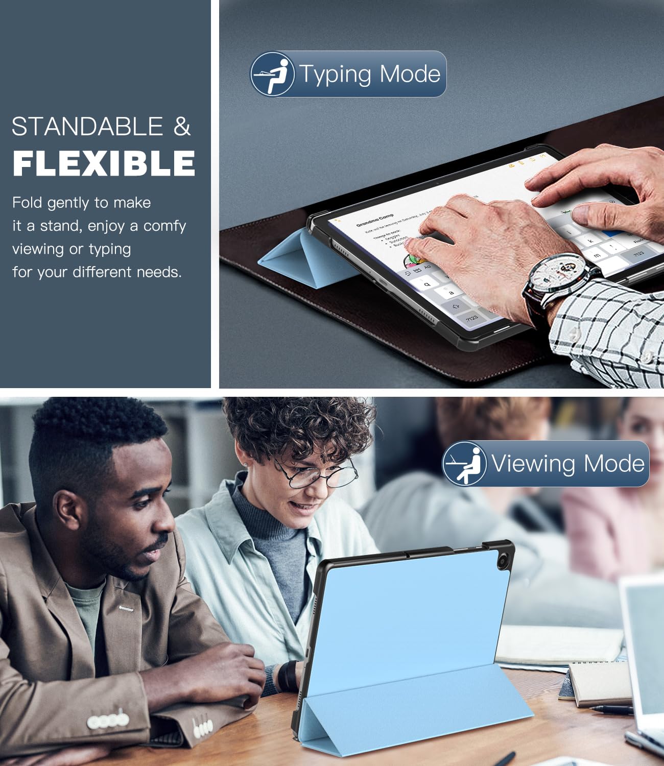 Adjustable Stand Angles: The top of this Galaxy Tab A9 Plus Case folds back to make a stand, which provides a sturdy stand position for both viewing and typing. Free your hands when watching, reading, or writing, a good way to alleviate neck strain