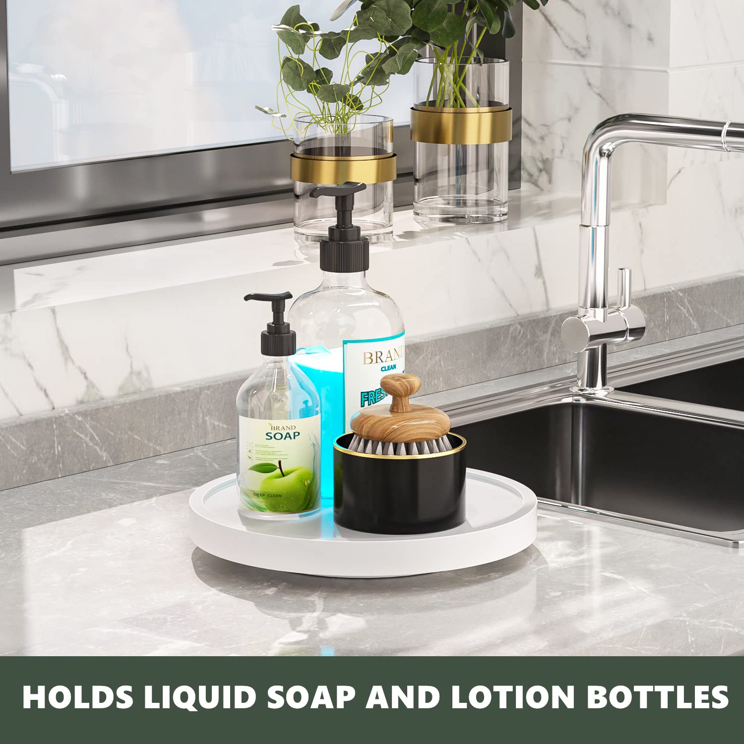 Multi-functions: Vanity tray to hold jewelry, perfume, cosmetics; bathroom tray holds liquid soap dispenser and lotion bottles, toothpaste cup; hold soap bottles and sponge by kitchen sink