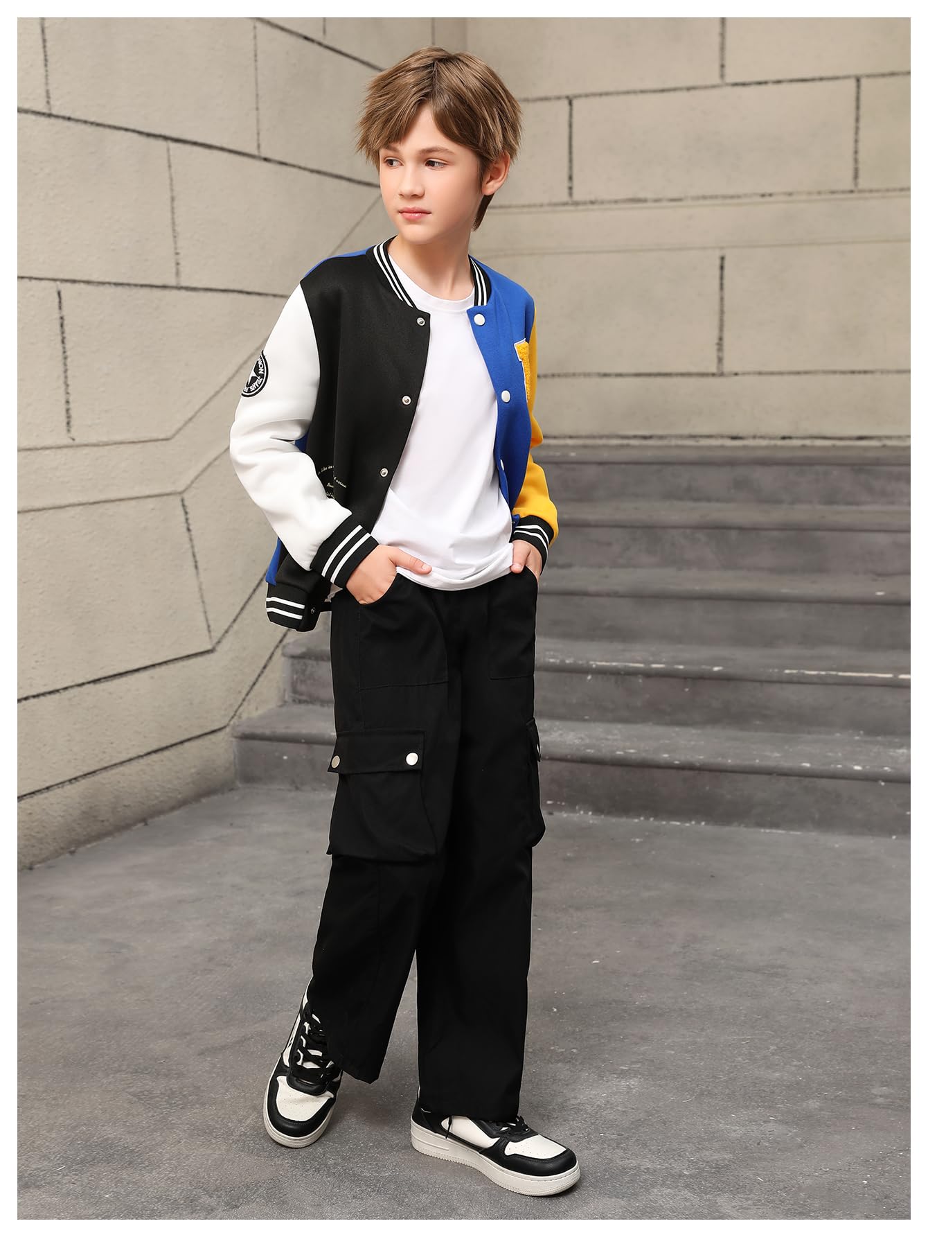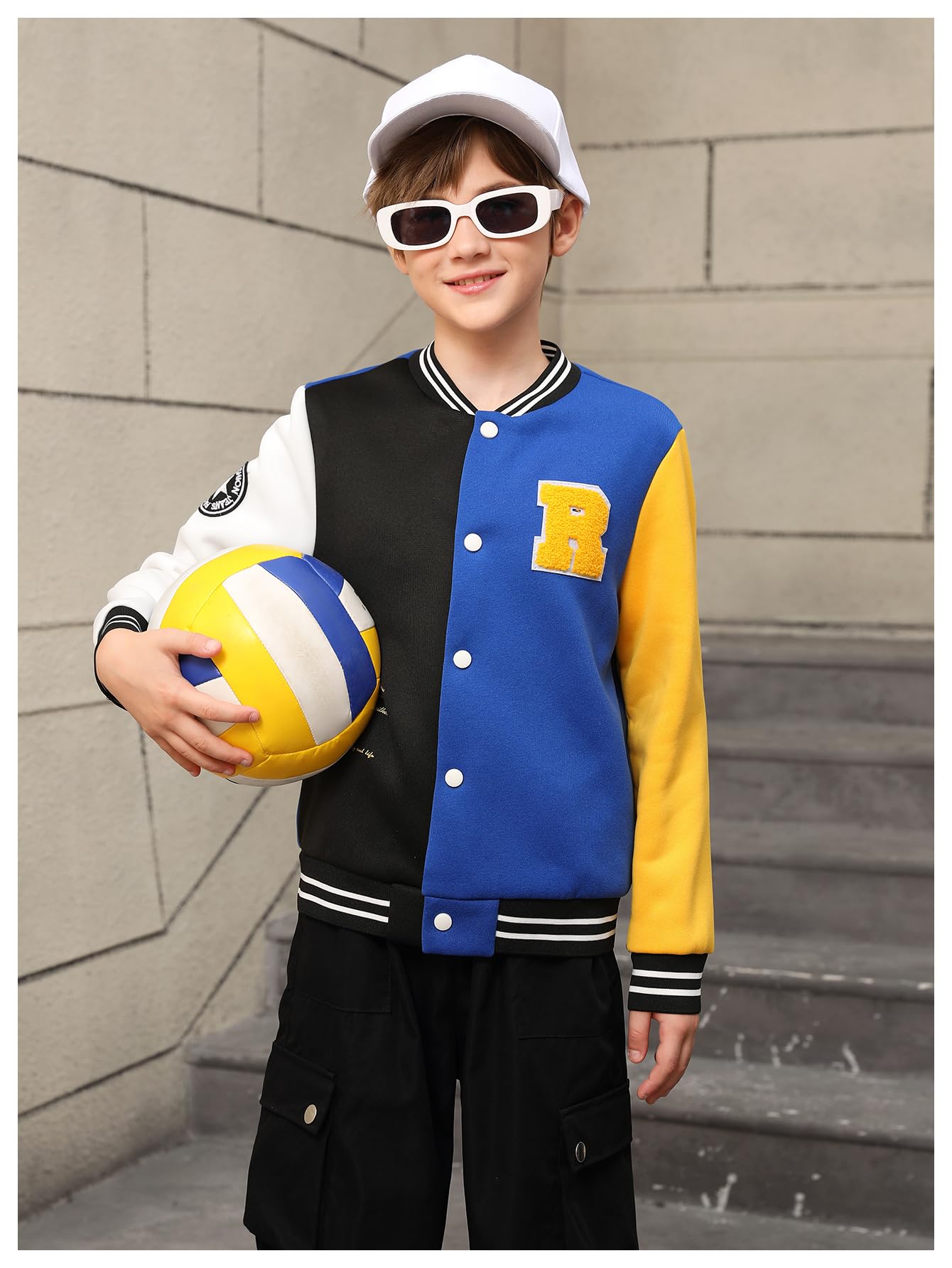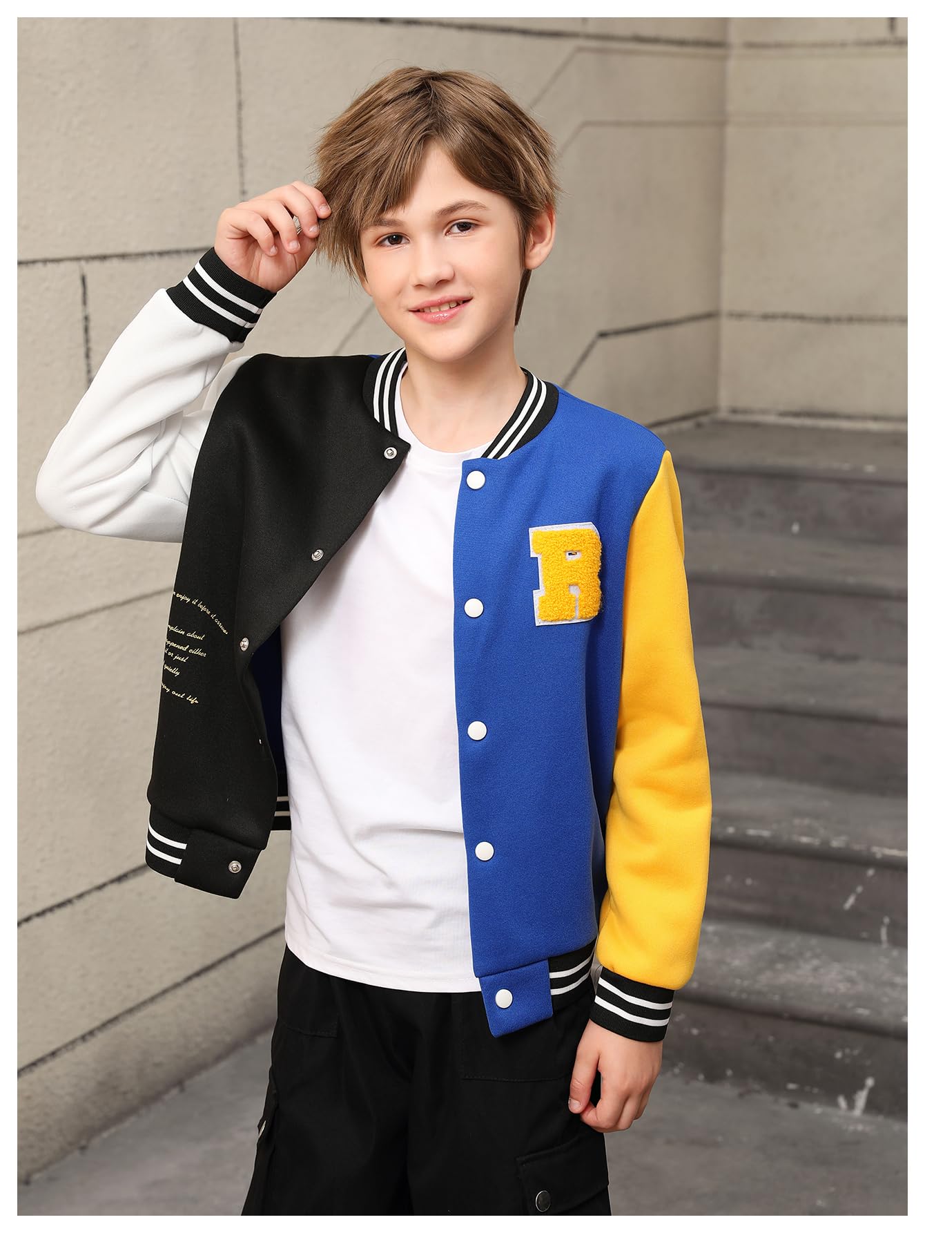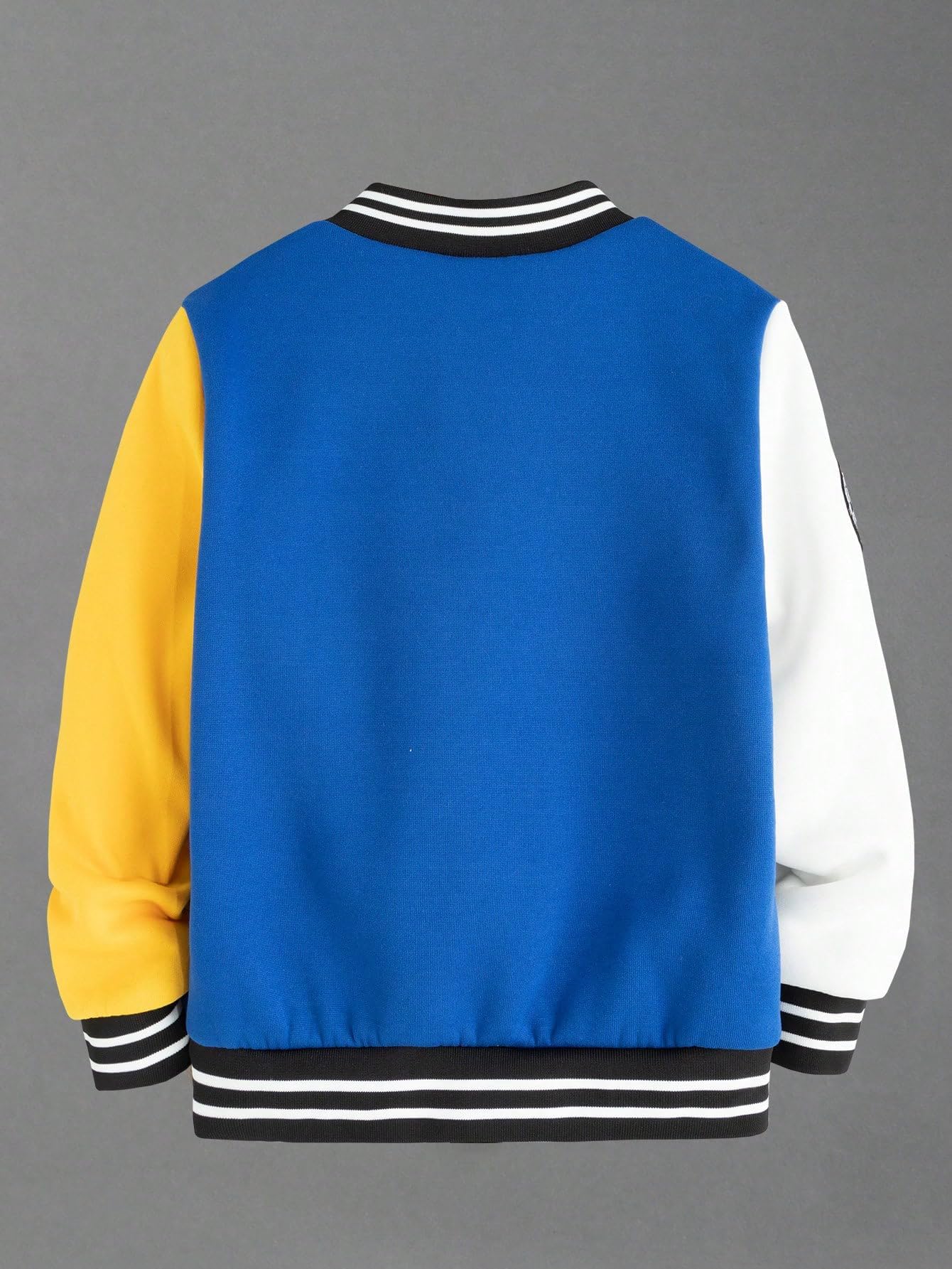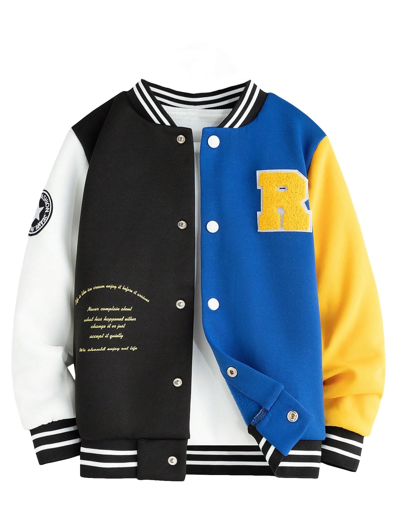 Features: baseball jacket, cartoon and letter prints, long sleeve, snap button, varsity style, causal outerwear