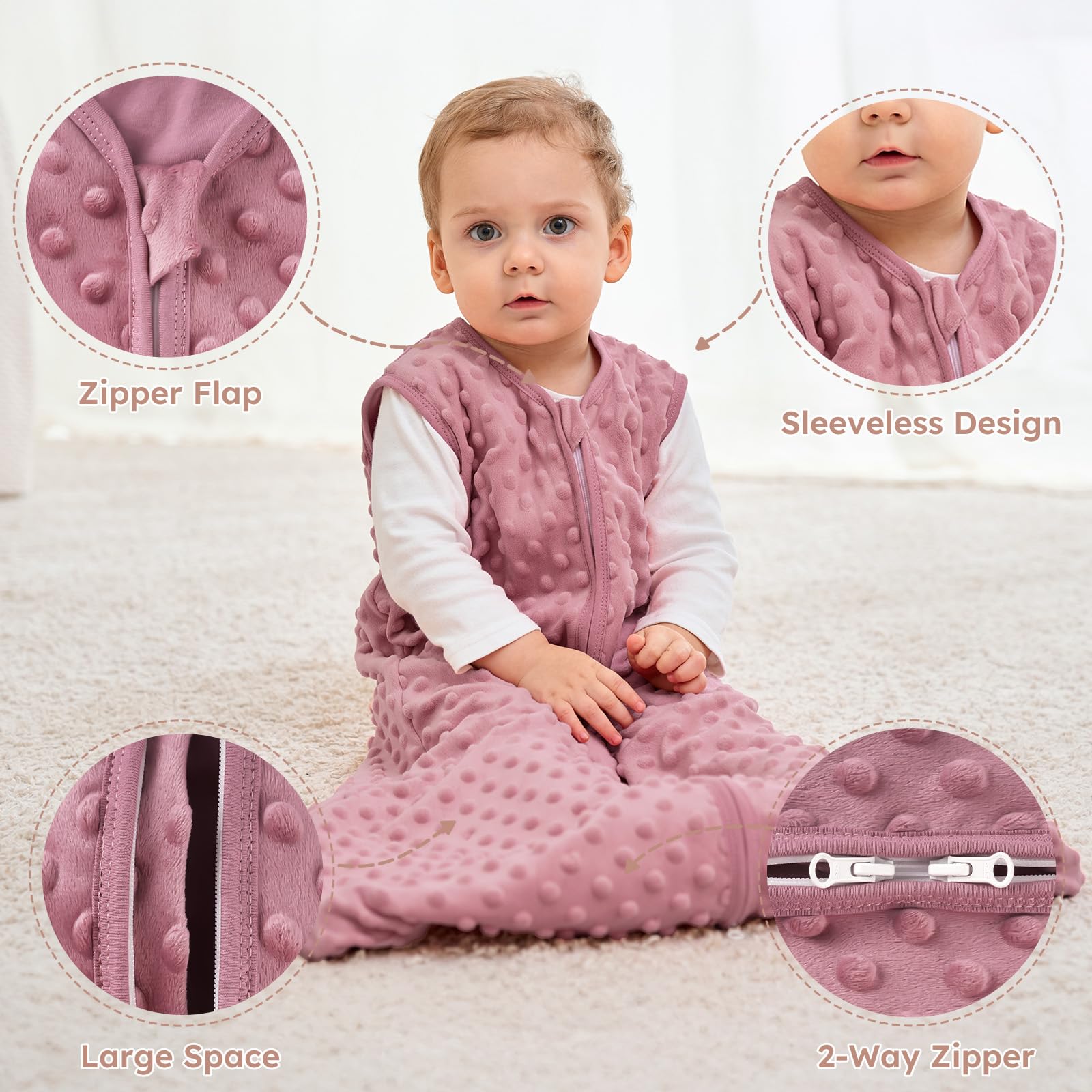 Healthy development - It's plush heart dots surface helps baby fall back to sleep quickly, transform the sleep sacks into an invaluable ally for moms, aiding in lulling their precious ones to sleep while fostering infants'cognitive development. Our baby sleeping sack provides ample room for kicking freely, ensuring your baby stays comfortable throughout the night while promoting healthy hip development.