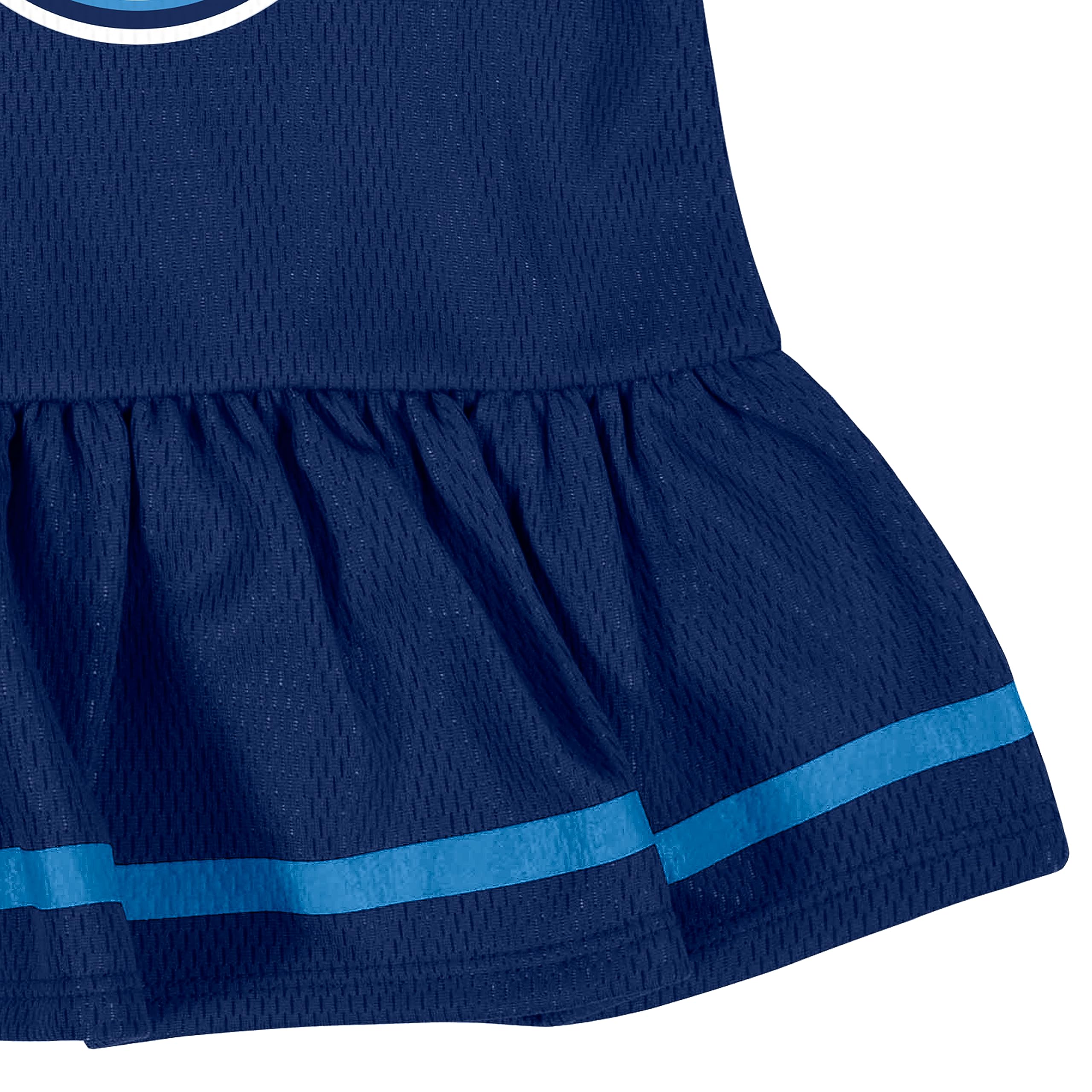 Description Don't leave any room for guessing which team your little girl pulls for on game day with this baby girls' dress and matching panty set! The 100% poly dazzle mesh and rib fabrics keep her comfortable on all of her adventures. The logo is proudly displayed on the front of the dress using big, bold screenprint artwork. Matching team colors help you create a look that's perfect for game day or any day you want to show your team pride! Just toss this outfit into the washer and dryer with the rest of the easy care items for quick and simple cleaning!