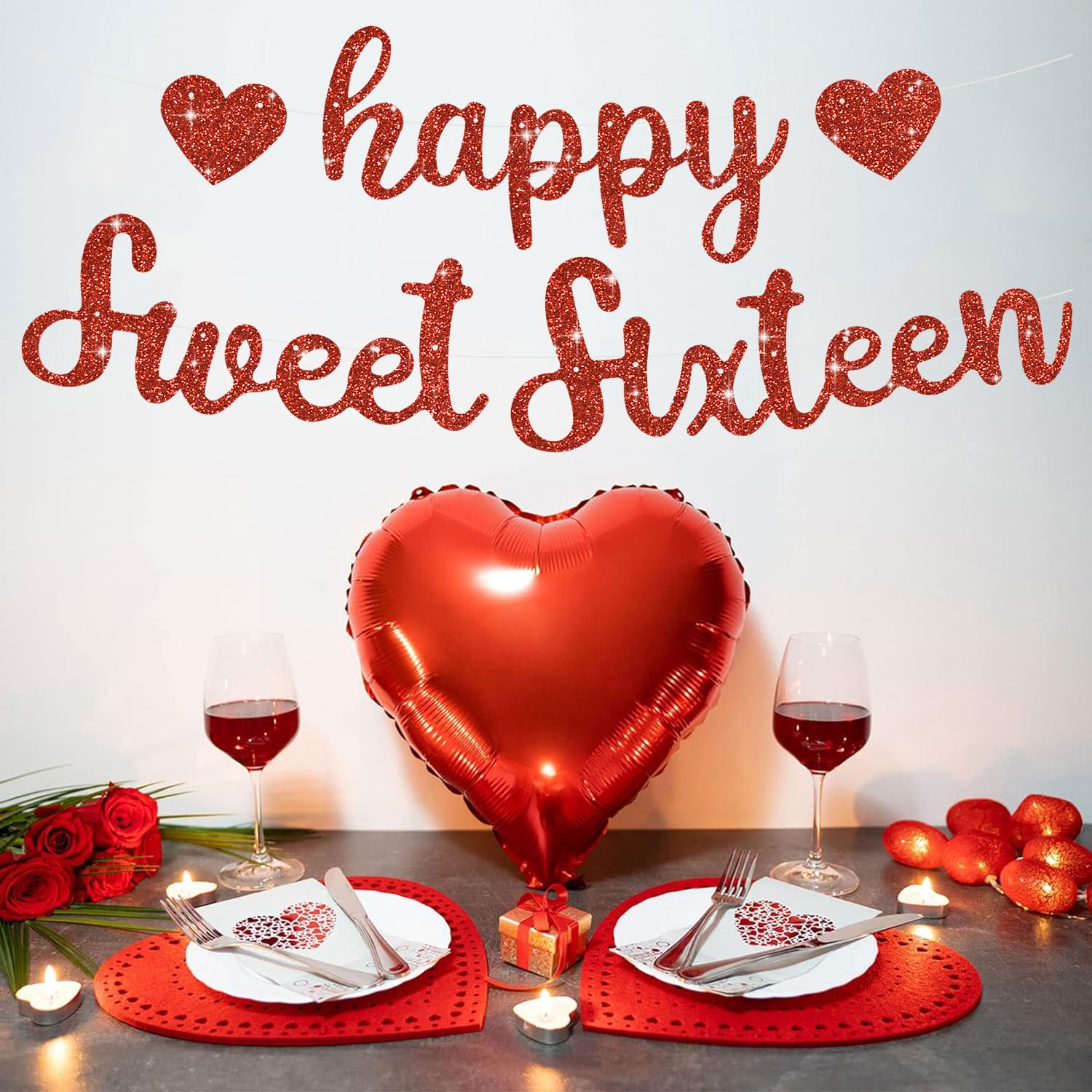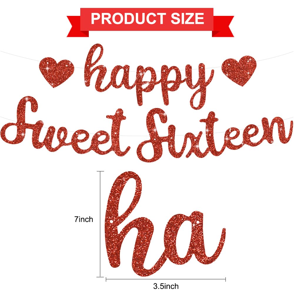 【Product includes】 : A red glitter Happy Sweet Sixteen birthday banner is included in our product. It is a very convenient birthday banner that can save your time and decorate your birthday very well.