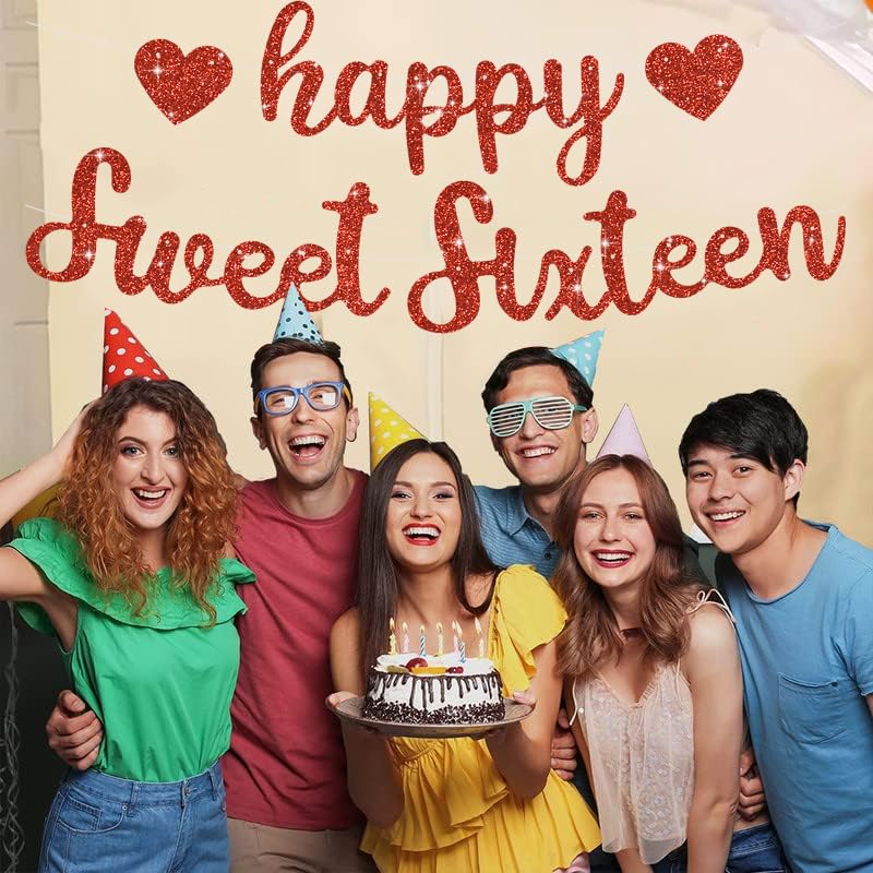 【Product includes】 △ A red glitter Happy Sweet Sixteen birthday banner It is a very convenient birthday banner that can save your time and decorate your birthday very well. 【Product design】Special design △ Red glitter style — giving you a beautiful party △ Beautiful designs — perfect for birthday party decorations. 【High quality】High quality card stock material △ Well-painted — painted with bright and clear colors. △ Reusable —lightweight and easy to store for the next time using. △ Time saving— Our birthday banner is Pre-strung, that means NO DIY required! It is ready to hang, and it is very convenient. 【Great role】 △ Eye catching — This banner is nice for your birthday party, and it will make your birthday party very beautiful. △ Impressive — Our birthday banner helps announce big moments and make unforgettable memories for your birthday party.