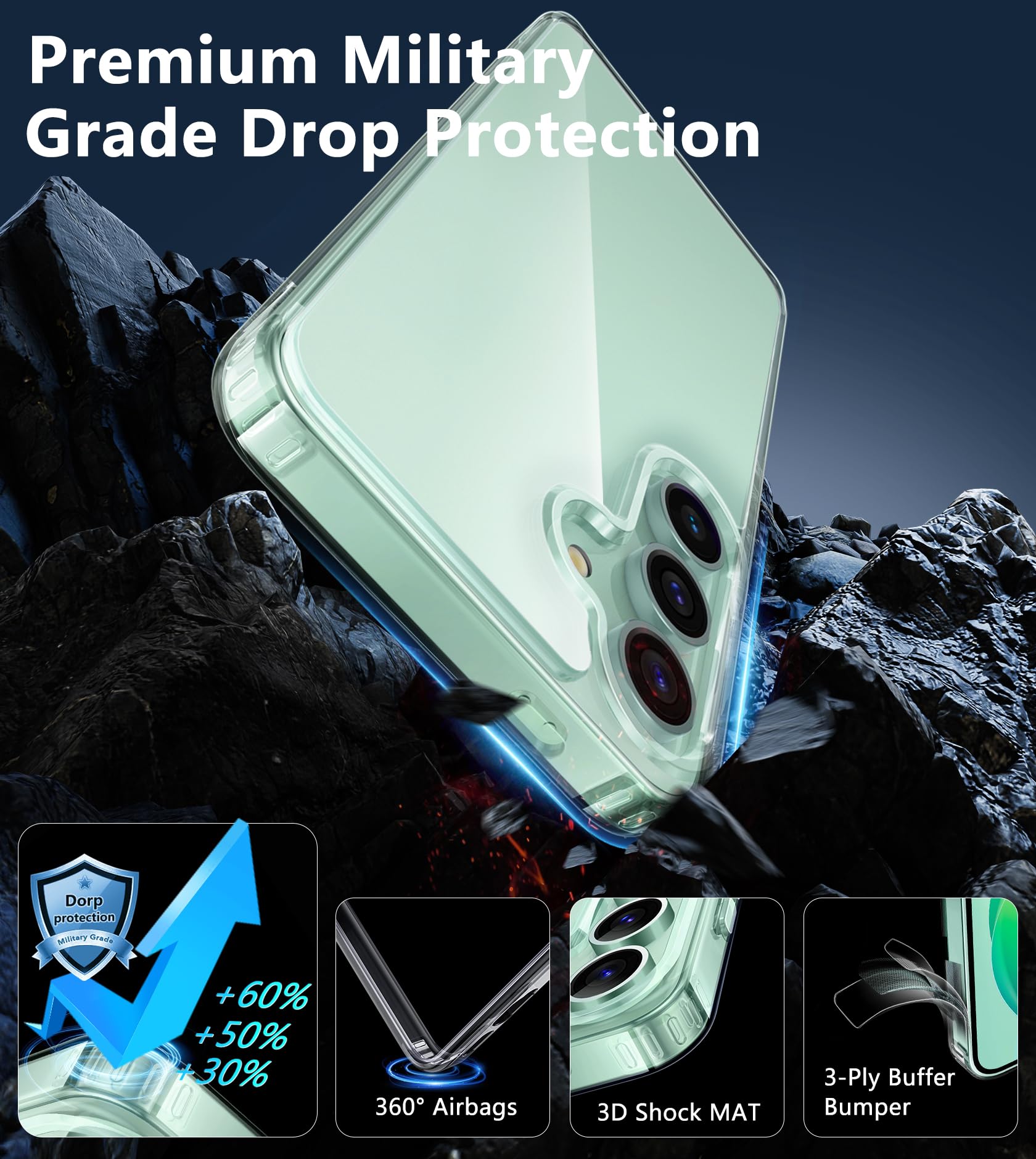 【10FT Military Grade Drop Protection】FNTCASE Samsung S24+ S25+ cover is made of rigid polycarbonate and shockproof TPU bumpers around the edge, with built-in 360 powerful impact absorbing airbags and four-corner reinforcement technology, which can prevent your Samsung Galaxy S24 Plus S25 Plus from accidental drops, bumps and scratches