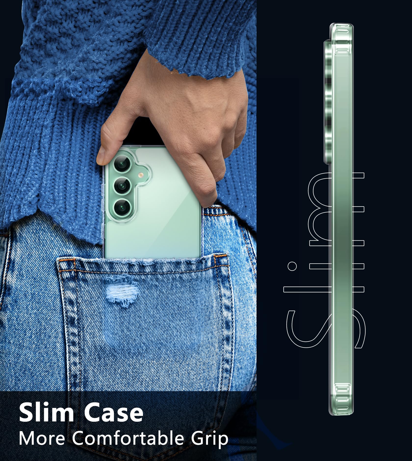 【Slim Fit & Secure Grip】This S24+ S25+ Plus protective case has an ultra-thin minimalist design without adding any extra bulky, while maintaining a good level of protection. The transparent case can totally achieve a great grip feeling also stay secure and clean, very easy to carry. Great gift for men, women, boys and girls