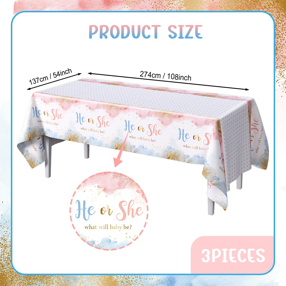 Package Includes: The gender reveal decoration includes 3 PCS boy or girl gender reveal tablecloths, enough for your party use and replacement.Blue and pink gender reveal party tablecloths size is 137 x 274 cm/ 54 x 108 inches, suitable for most tables.