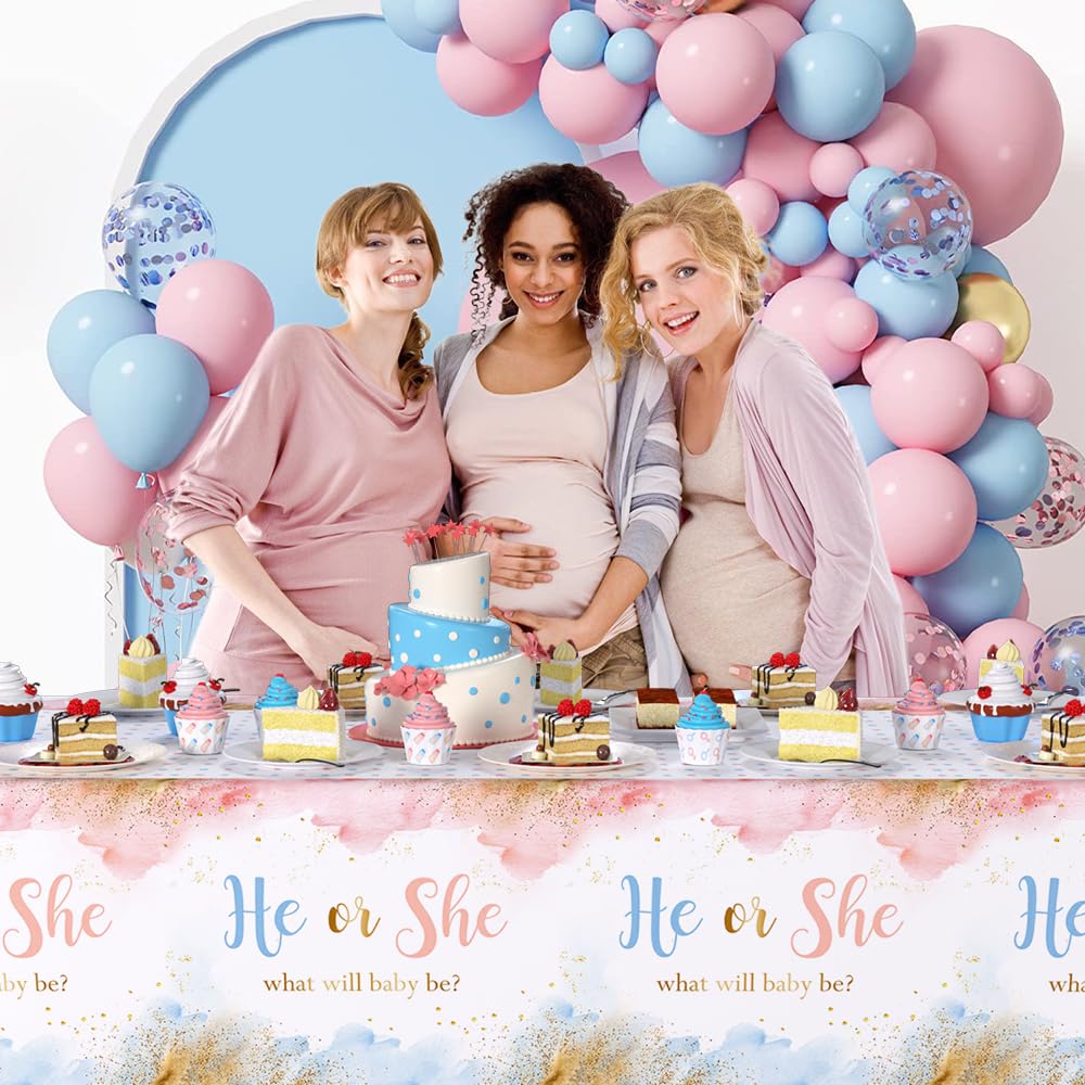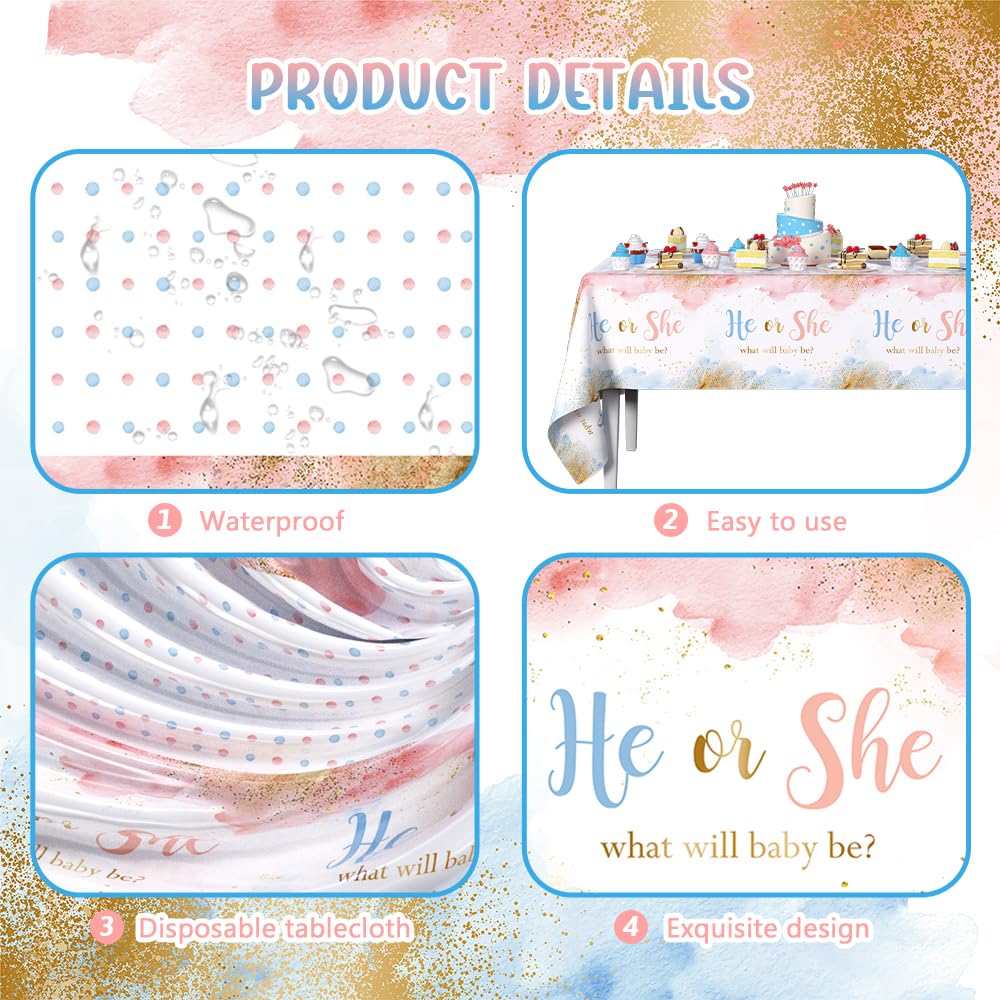 Exquisite design: The tablecloth for gender reveal are designed with elegant "He or She" and the delicate blue and pink watercolor cloud ,vibrant colors and beautiful printing. It is very beautiful and dazzling, adding a party atmosphere to your gender reveal party.