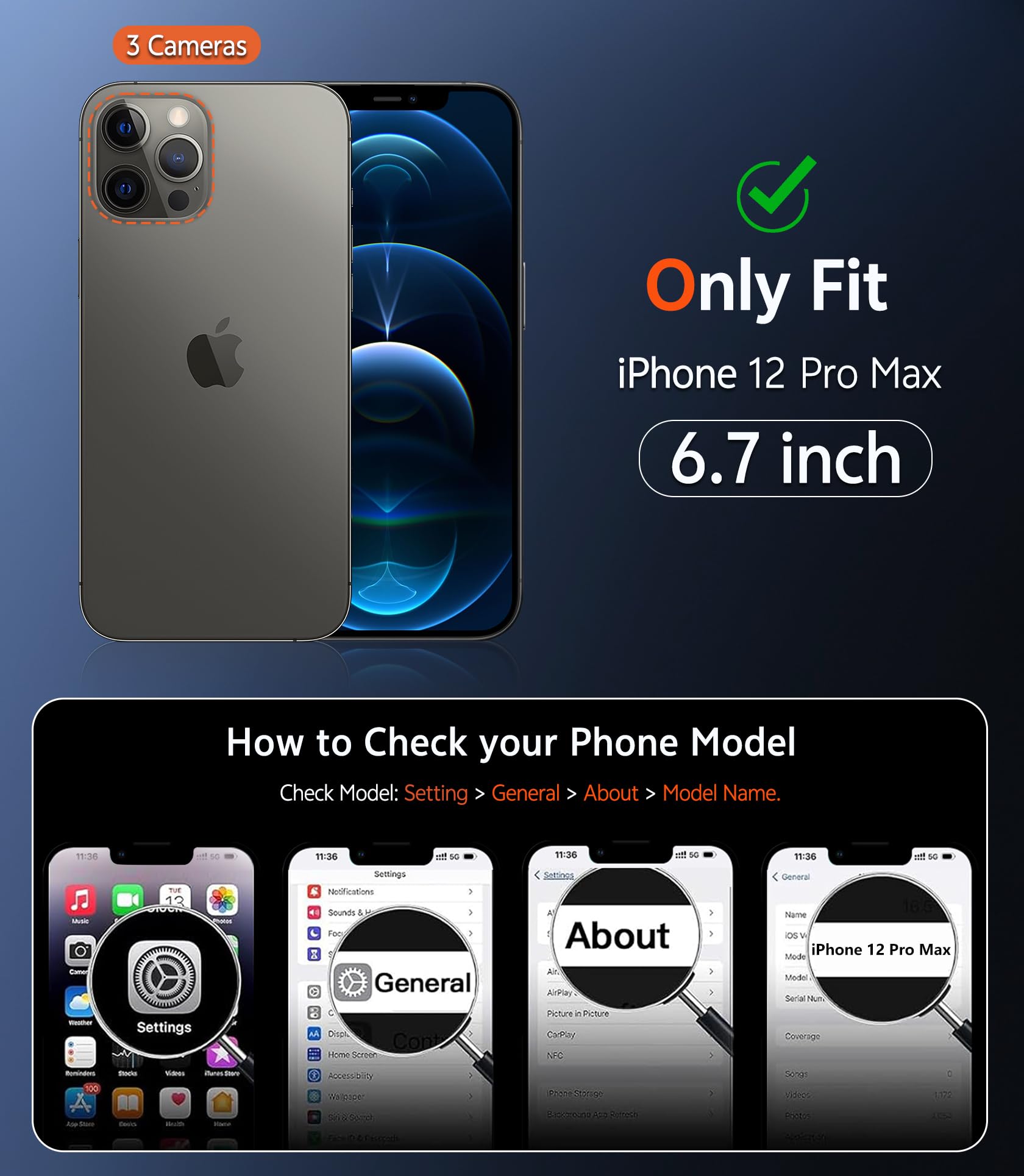 10FT Military Grade Protection: Passed Military Drop Tested up to 10FT. This iPhone 12 Pro Max case backplane is made with rigid polycarbonate and flexible shockproof TPU bumpers around the edge and features 4 built-in corner Airbags to absorb impact, which can prevent your Phone from accidental drops, bumps, and scratches