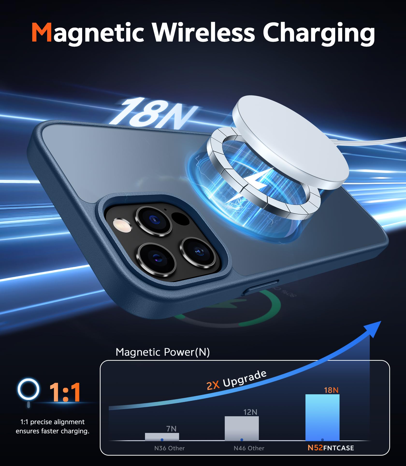 Strong Magnetic Attraction: The iPhone 12 Pro Max magnetic case has built-in 38 super N52 magnets. Its magnetic attraction reaches 2400 gf, which is almost 7X stronger than ordinary, therefore it won't fall off no matter how it shakes when you are charging