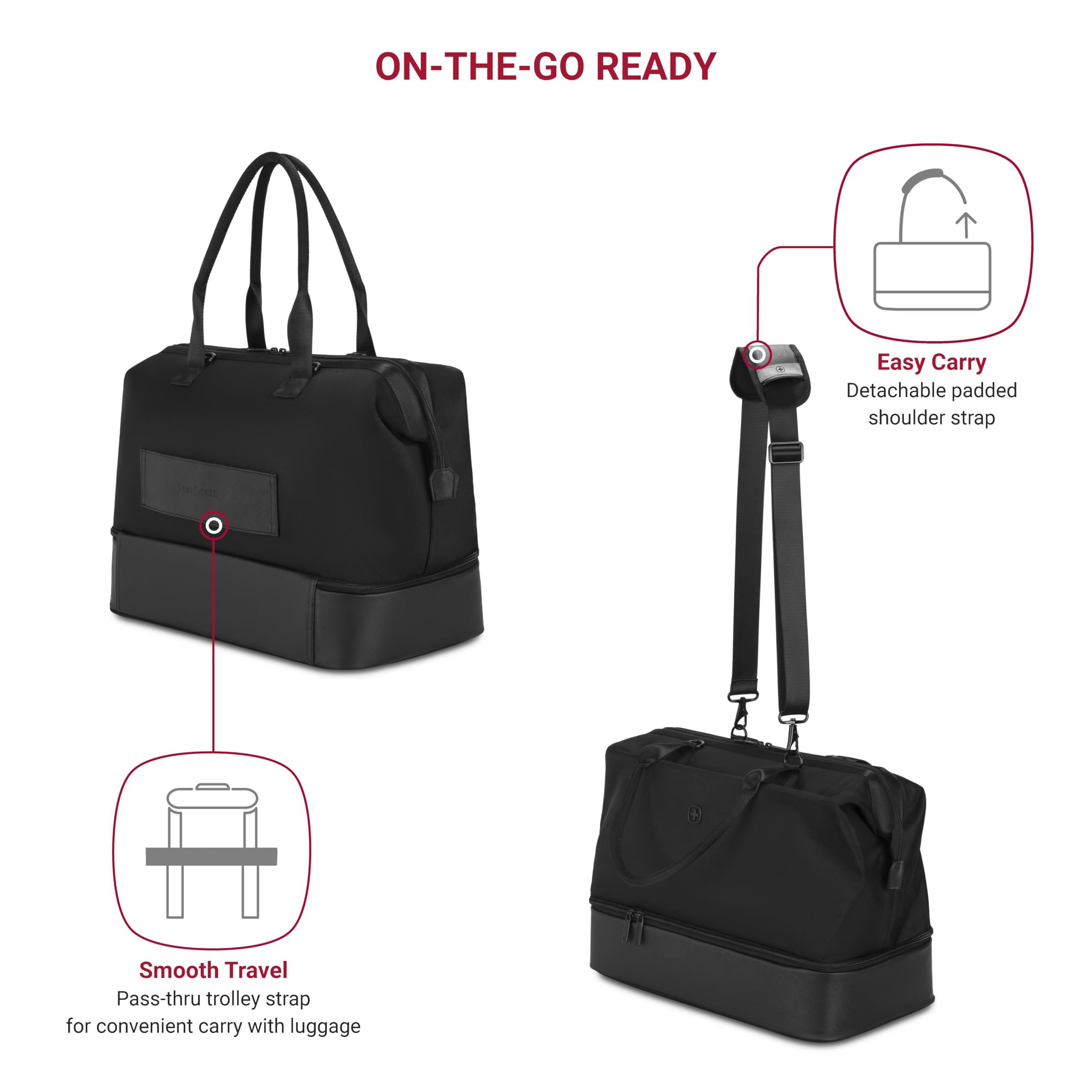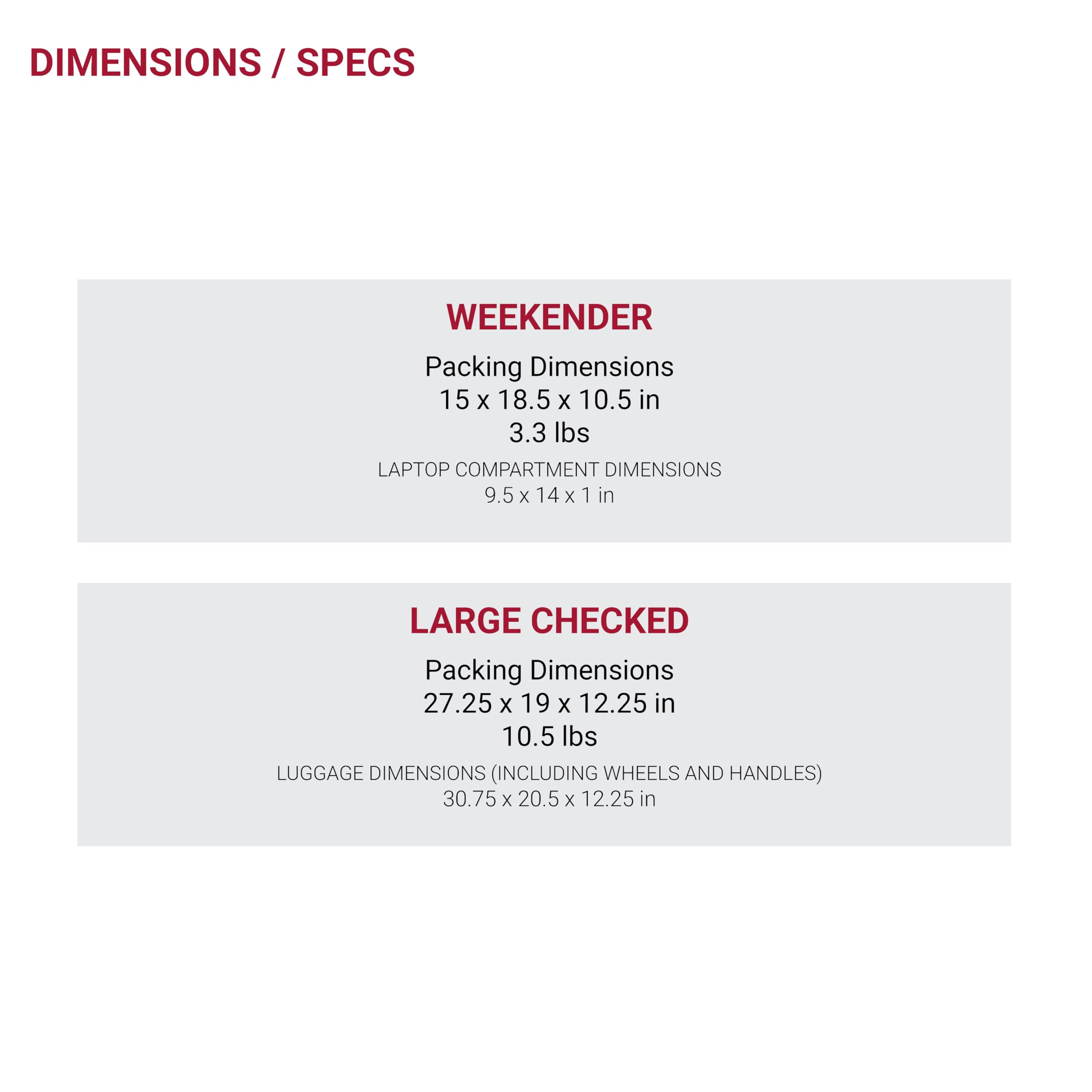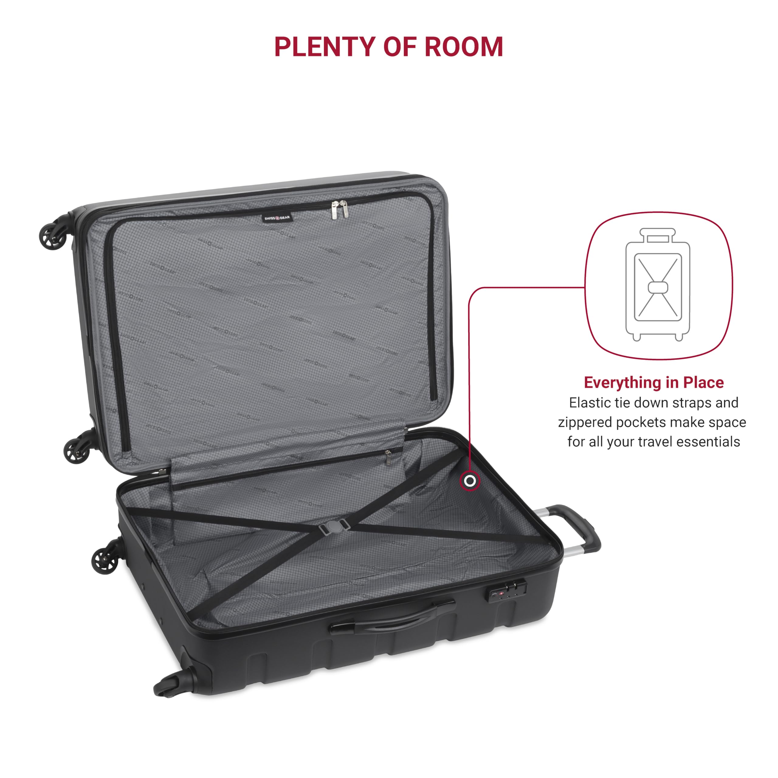 Description Travel in style and confidence with the SwissGear 7366 Expandable Hardside Luggage Set. Designed for durability and modern convenience, this set includes a versatile Weekender Tote and a 27” large checked suitcase—perfect for any travel itinerary. The Weekender Tote features a wire-frame opening for easy packing, a key hook, a trolley strap for secure stacking, and a zippered bottom compartment ideal for shoes or extra essentials. The hardside suitcase boasts an almost indestructible split-case design, offering an organized interior with tie-down straps, a zippered lid pocket, and a spacious packing compartment to keep your belongings secure. With smooth four-wheel 360-degree spinner mobility, a premium steel locking telescopic handle, and expandable packing capacity, this set ensures stress-free travel. For added security, the hardside suitcase includes a built-in TSA-approved three-dial combination lock. Whether you're traveling for business or leisure, this stylish and functional luggage set is designed to keep you organized and ready for any adventure.