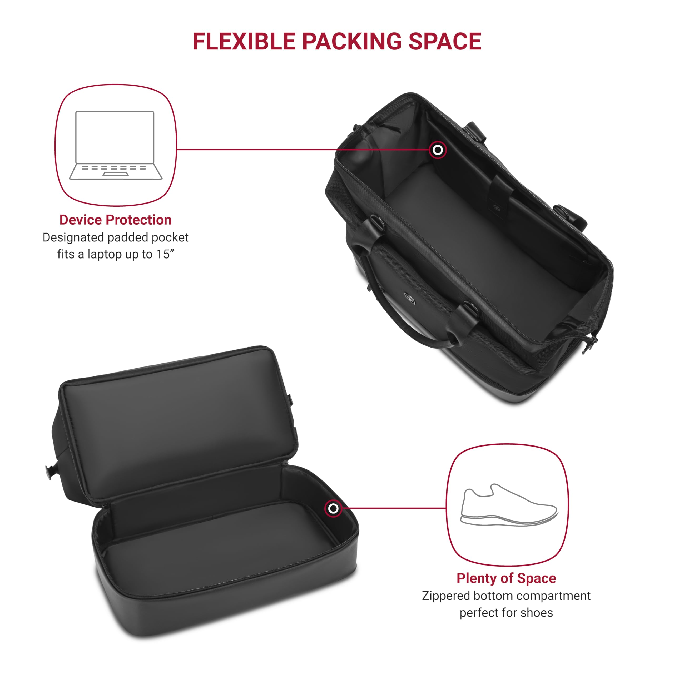 2-Piece Weekender & Expandable Luggage Set: This versatile set includes a stylish Weekender Tote and a 27-inch expandable suitcase, perfect for two-week trips. The Weekender features a wire-frame opening for easy packing, a key hook, a trolley strap for secure stacking, and a zippered bottom compartment ideal for shoes or extra essentials.
